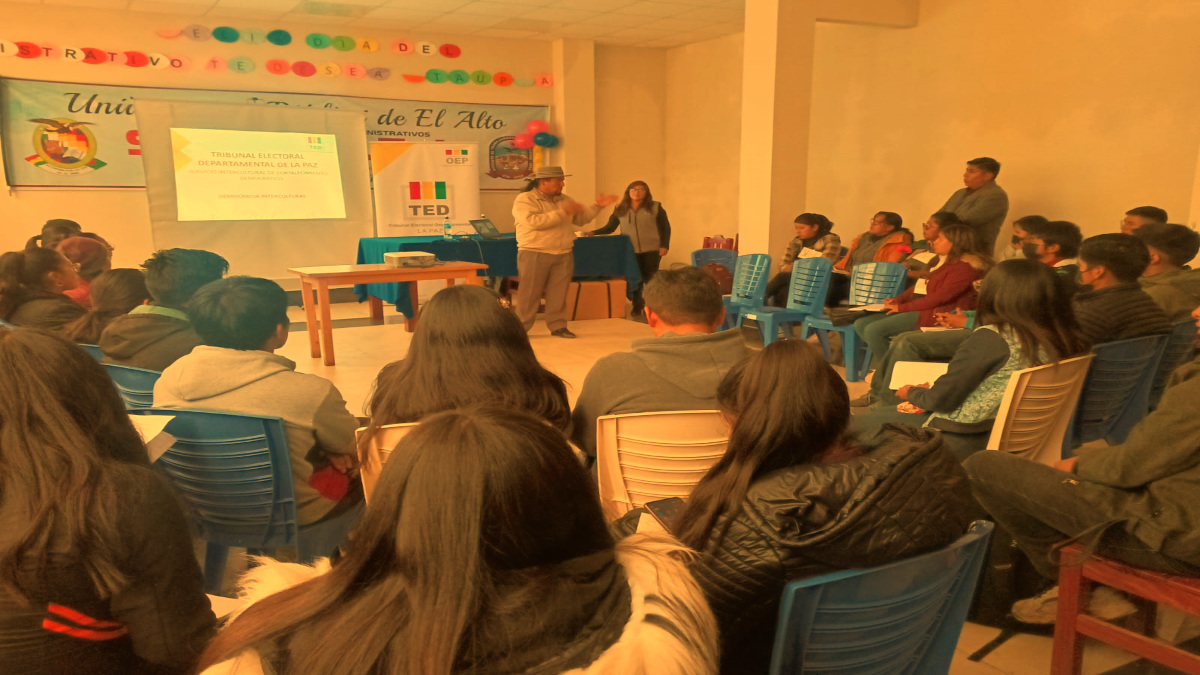 La actividad se desarrolló en instalaciones de la Universidad Pública de El Alto (UPEA), donde el vocal del Tribunal Electoral Departamental de La Paz, Sabino Chávez, se dirigió a los asistentes para destacar la importancia de esta capacitación que coadyuva en la logística de un proceso electoral.
