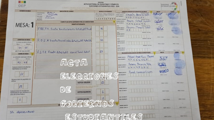 Este 3 de abril, el Tribunal Electoral Departamental (TED) de Potosí compartió la jornada de elecciones de gobiernos estudiantiles que se realizaron en 1.535 unidades educativas y la participación de 111.507 estudiantes habilitados para elegir a sus directivas optando por la democracia representativa o comunitaria.