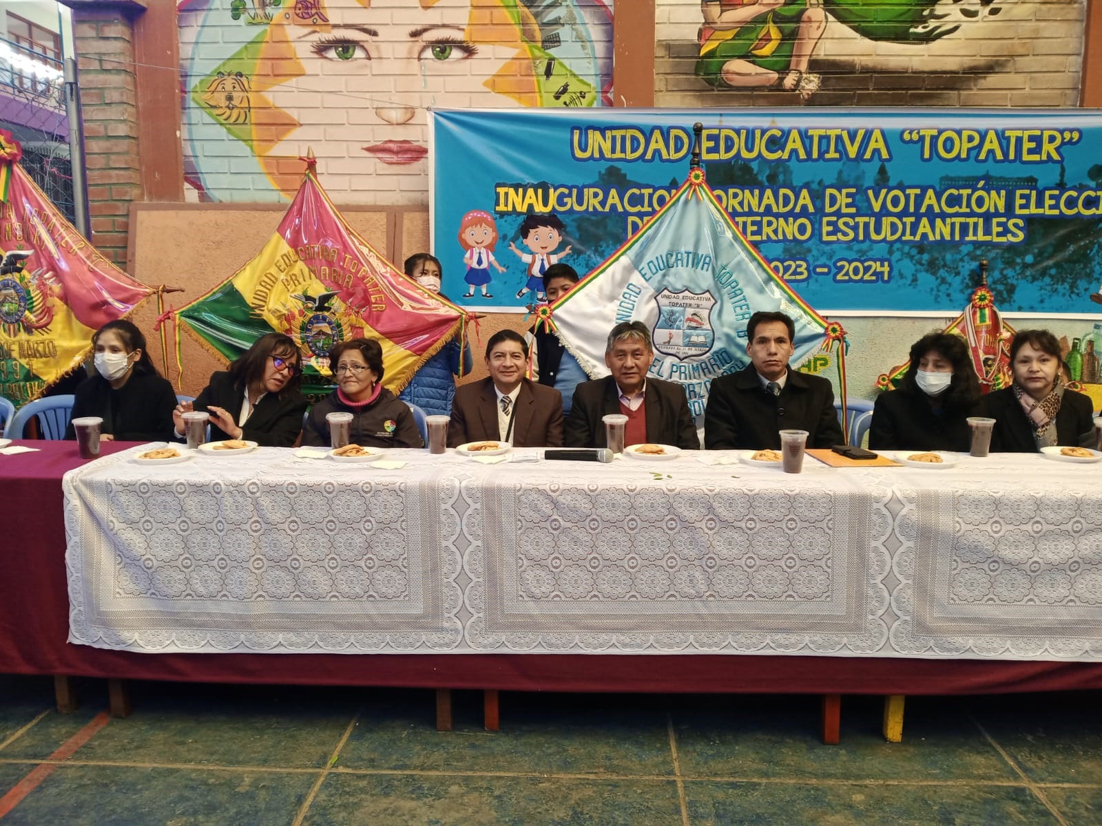 El Tribunal Electoral Departamental (TED) de Potosí y la Dirección Departamental de Educación inauguraron la jornada electoral en la unidad educativa Topáter de esta ciudad a horas 07:30, acto que tuvo como invitados especiales a autoridades departamentales, al presidente del TED Potosí, Rodolfo Vera, y al director departamental de Educación, Germán Salvador.