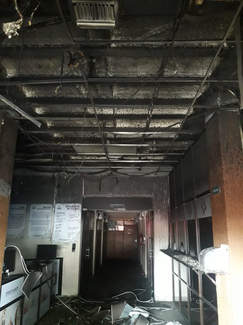 * Así quedaron las oficinas del Serecí y del TED Santa Cruz después del incendio ocasionado este martes.
