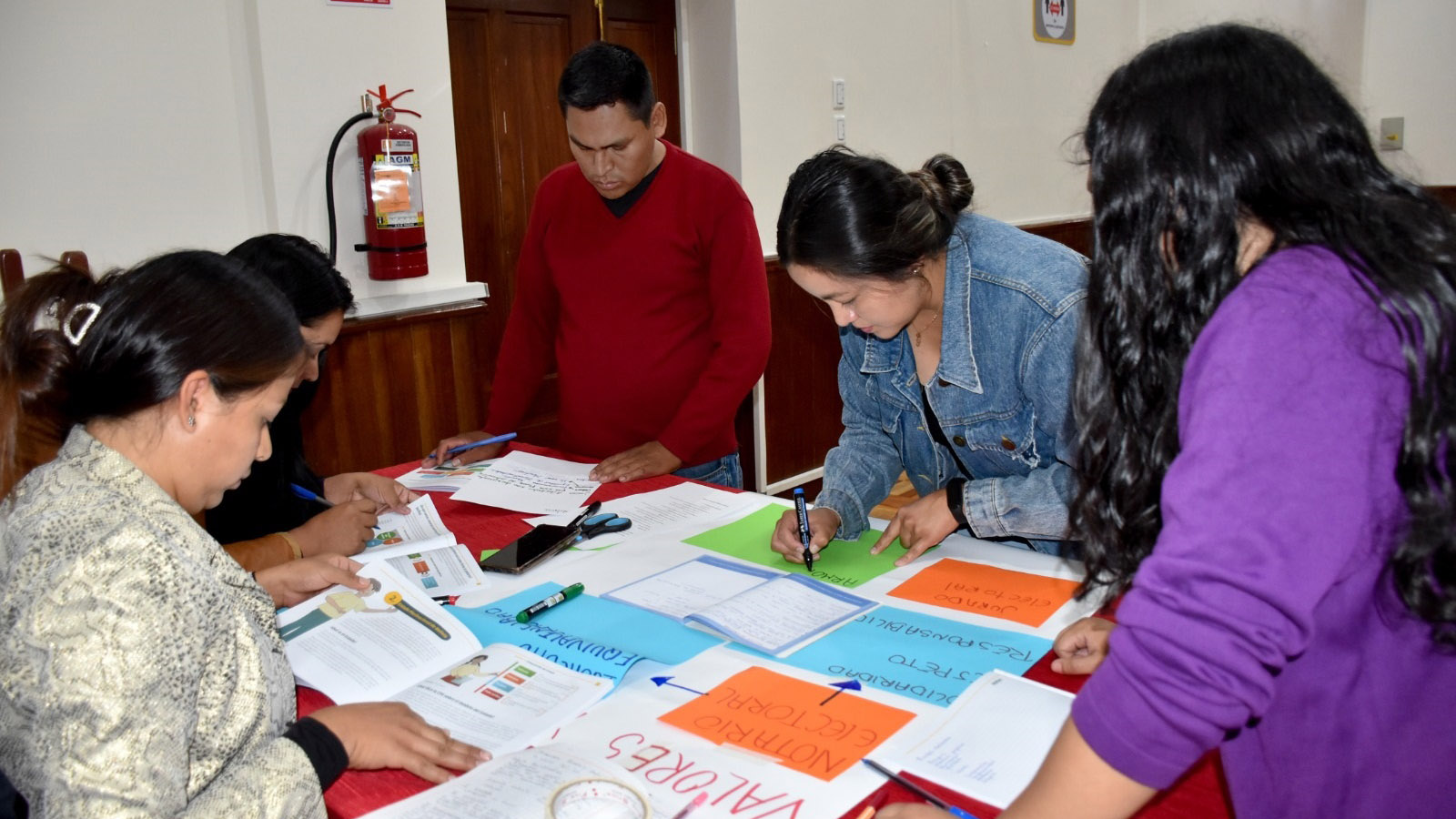 Las y los participantes desarrollaron de manera teórica y práctica temas relacionados a las atribuciones y funciones conferidas a las notarias y notarios electorales, democracia intercultural y la organización funcional del OEP, entre otros.