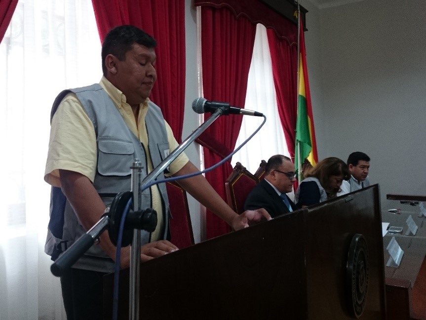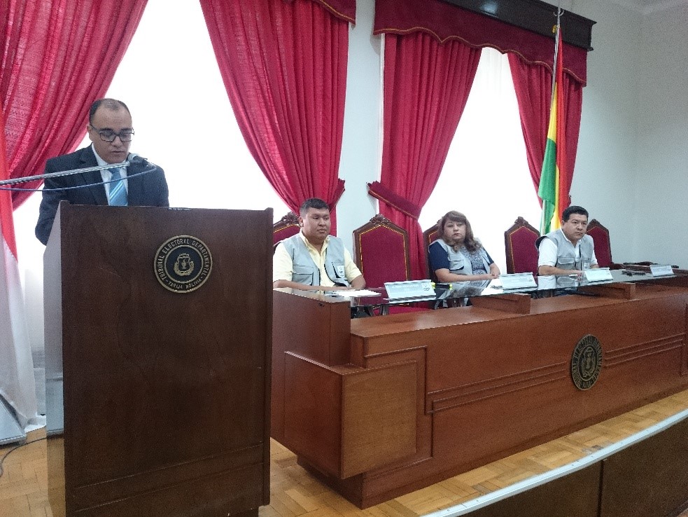 El acto público se desarrolló en el salón de la Democracia del TED Tarija ante la presencia de representantes de instituciones públicas y de organizaciones de la sociedad civil, instituciones policiales, militares, medios de comunicación y ciudadanía, en el marco del cumplimiento al artículo 37, numeral 3 de la Ley Nº 018 del Órgano Electoral Plurinacional y a la Ley Nº 341 de Participación y Control Social,