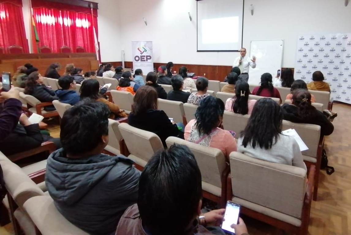 Durante la exposición, el presidente del TED Tarija, Gustavo Ávila Mercado, presentó la estructura y contenido del Reglamento de Elecciones Generales 2019, que fue aprobado mediante Resolución de Sala Plena del Tribunal Supremo Electoral TSE-RSP-ADM Nº 230/2019 del 24 de mayo pasado.