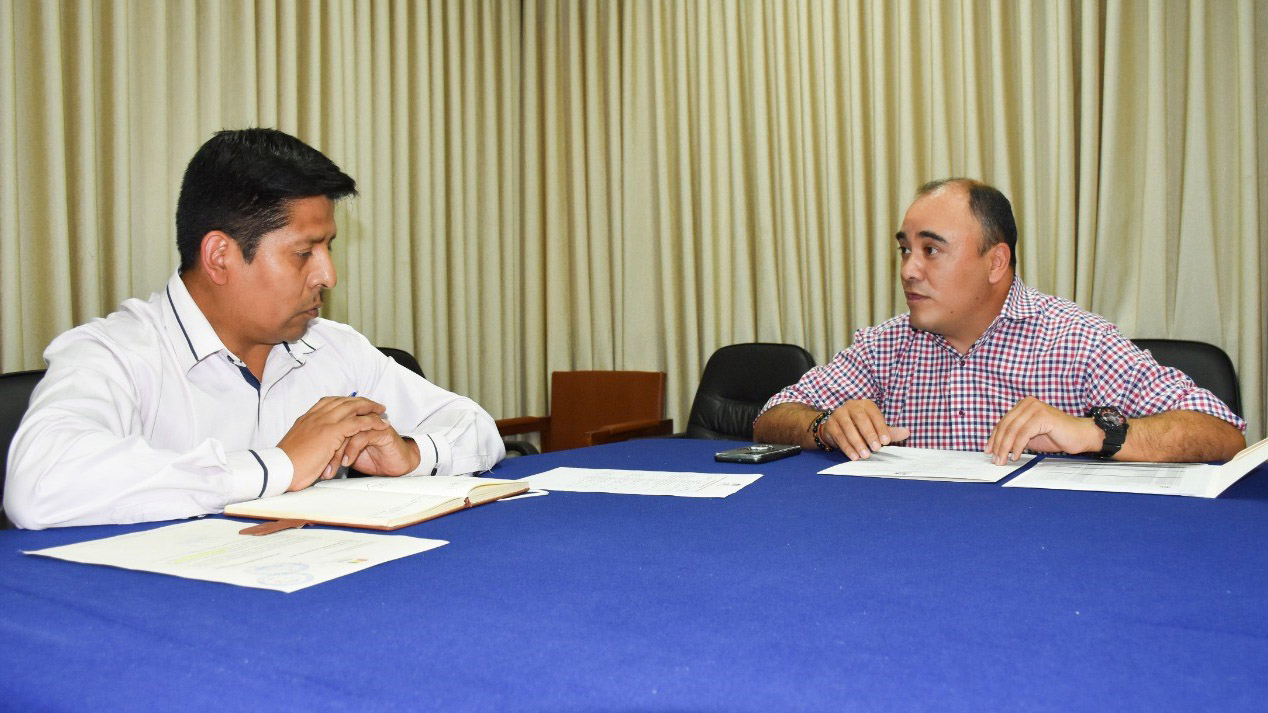 Vocal del TED Tarija, Gustavo Ávila se reúne con el subdirector de Educación Regular, Guillermo Cincko.