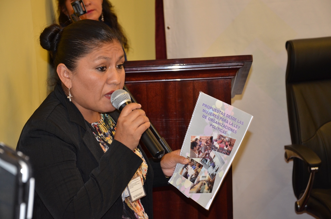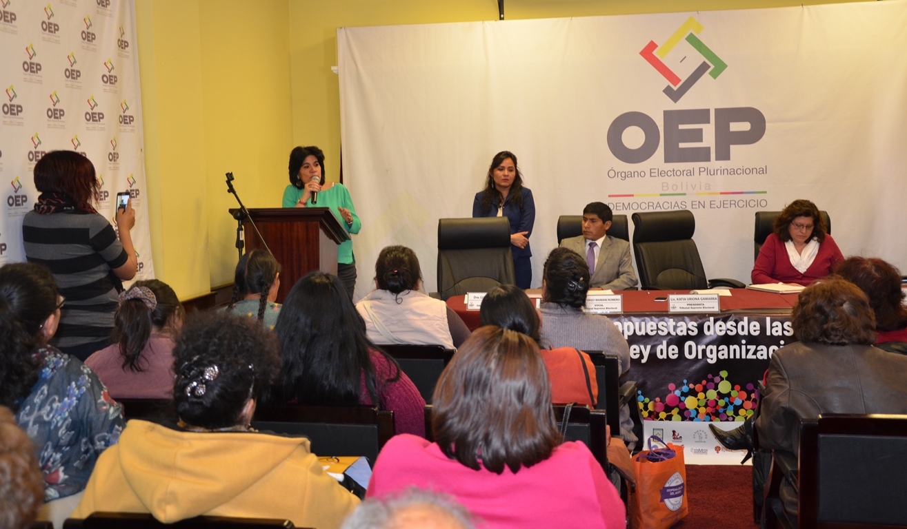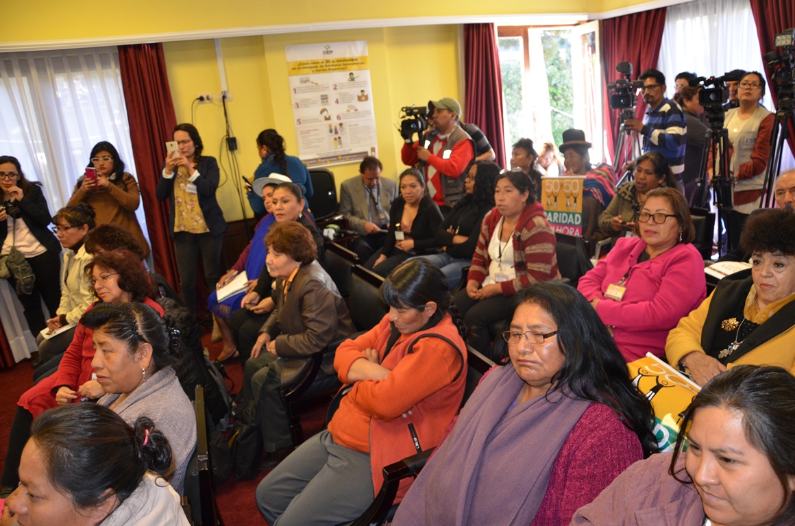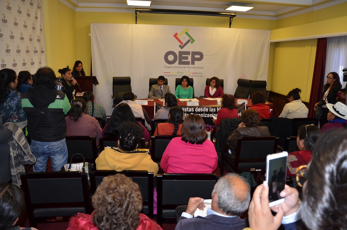 El documento fue presentado en una audiencia pública, como resultado del trabajo de nueve talleres departamentales que se realizaron en febrero pasado y donde participaron más de 500 mujeres miembros de organizaciones políticas y sociales. Estos talleres fueron impulsados por la Coordinadora de la Mujer, Onu Mujeres con el apoyo del Órgano Electoral Plurinacional.