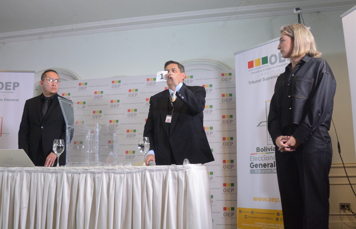 El acto público —efectuado alrededor de las 19:00 y conducido por el secretario de Cámara del TSE, Fernando Arteaga— contó con la presencia de los vocales Tahuichi Tahuichi, Nancy Gutiérrez y Nelly Arista, además de los representantes de la Alianza Libre y del Partido Demócrata Cristiano (PDC). También estuvieron presentes varios medios de comunicación.