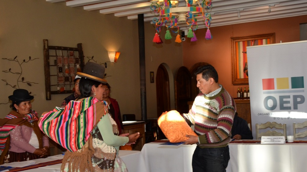 La Ley No. 018 del Órgano Electoral Plurinacional, dispone que el TSE esté compuesto por al menos dos vocales de origen indígena originario campesino y en el caso de los TEDs al menos sea uno.