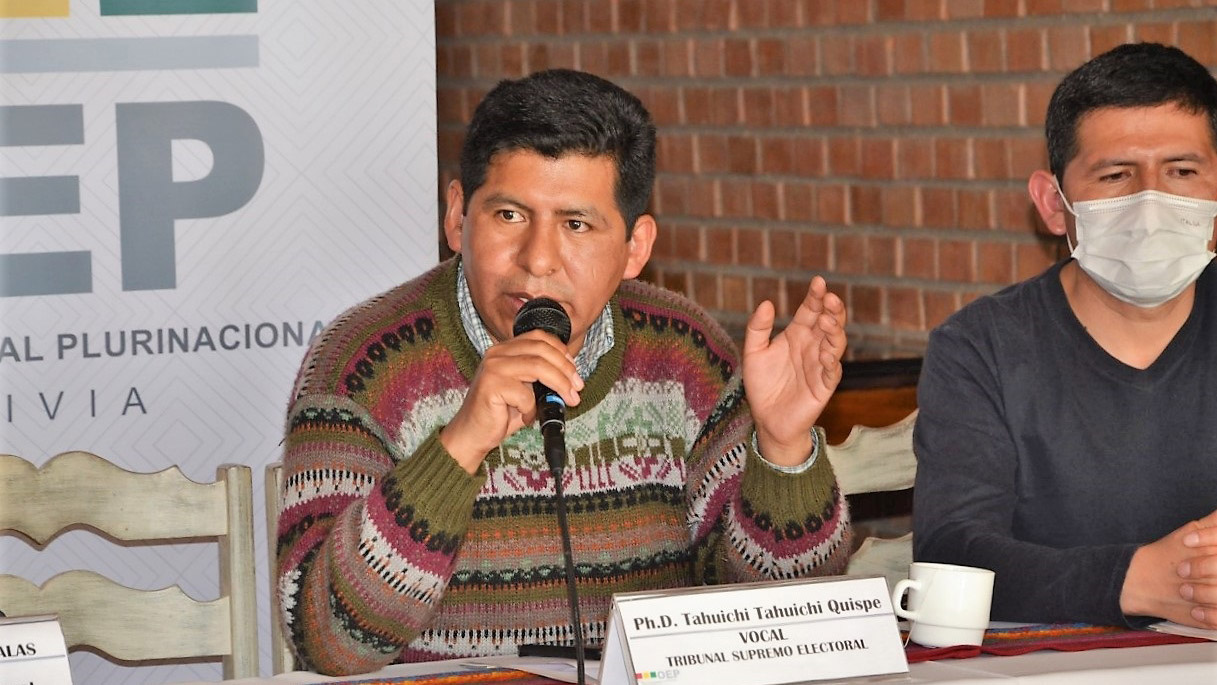 Así mismo, el Vocal del TSE Tahuichi Tahuichi Q. realizó una breve reseña histórica de los hitos más importantes en la conquista de los derechos de los pueblos indígenas desde la colonización española hasta los modelos de Estado de 1825, 1952 y 2009, mencionando reivindicaciones destacables a partir de 1956, que producto de la revolución nacional los indígenas lograron acceder al voto universal por primera vez, enfatizando también que a partir de la aprobación de la actual Constitución Política del Estado en 2009, el Estado Boliviano recién reconoció legalmente a las 36 naciones originarias, entre ellas el aymara, el quechua, el guaraní entre otras.