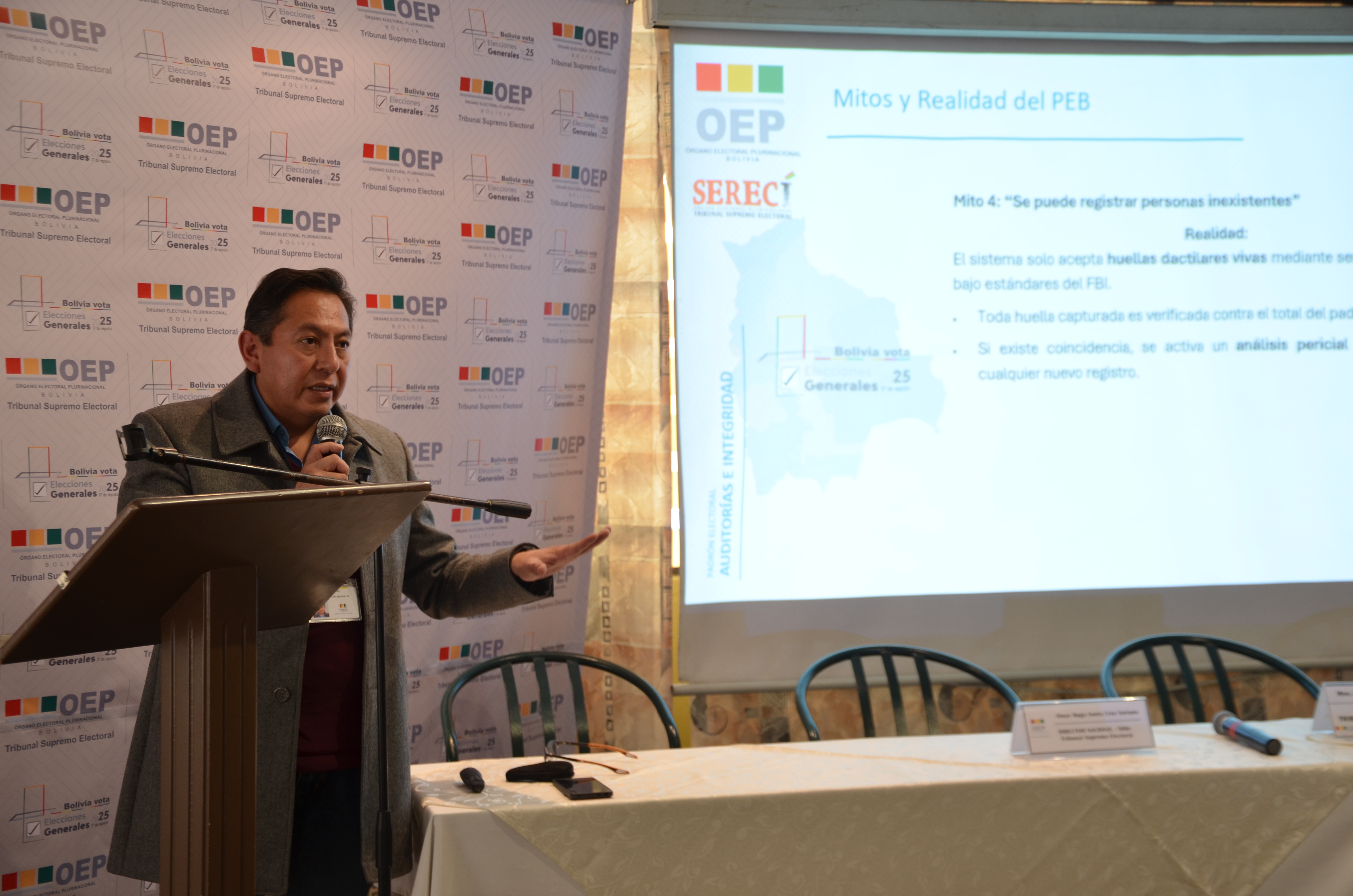 Finalmente, remarcó que se busca mostrar un proceso transparente y de amplio acceso a la información electoral, así como fortalecer la confianza ciudadana y combatir la desinformación sobre la Elección de Autoridades y Representantes del Estado Plurinacional 2025, un proceso que se lleva adelante con apego a la normativa vigente.