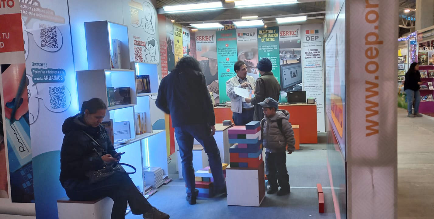 El Tribunal Supremo Electoral (TSE) participa en la vigésima octava versión de la Feria Internacional del Libro en la ciudad de La Paz, con la exposición de juegos didácticos para luchar contra la desinformación en materia electoral, presentación de las recientes publicaciones elaboradas por el Servicio Intercultural de Fortalecimiento Democrático (Sifde) y el despliegue de servicios como la otorgación de certificaciones de registro civil.