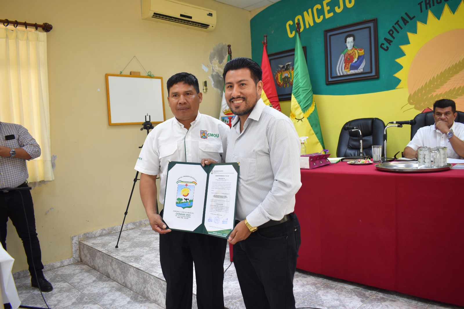 El presidente del Tribunal Supremo Electoral (TSE), Óscar Hassenteufel, y el Vicepresidente Francisco Vargas se reunieron con el Concejo Municipal de Okinawa Uno, en el departamento de Santa Cruz, con la finalidad de absolver las dudas y consultas sobre los requisitos para llevar adelante el referendo de la Carta Orgánica de este municipio.