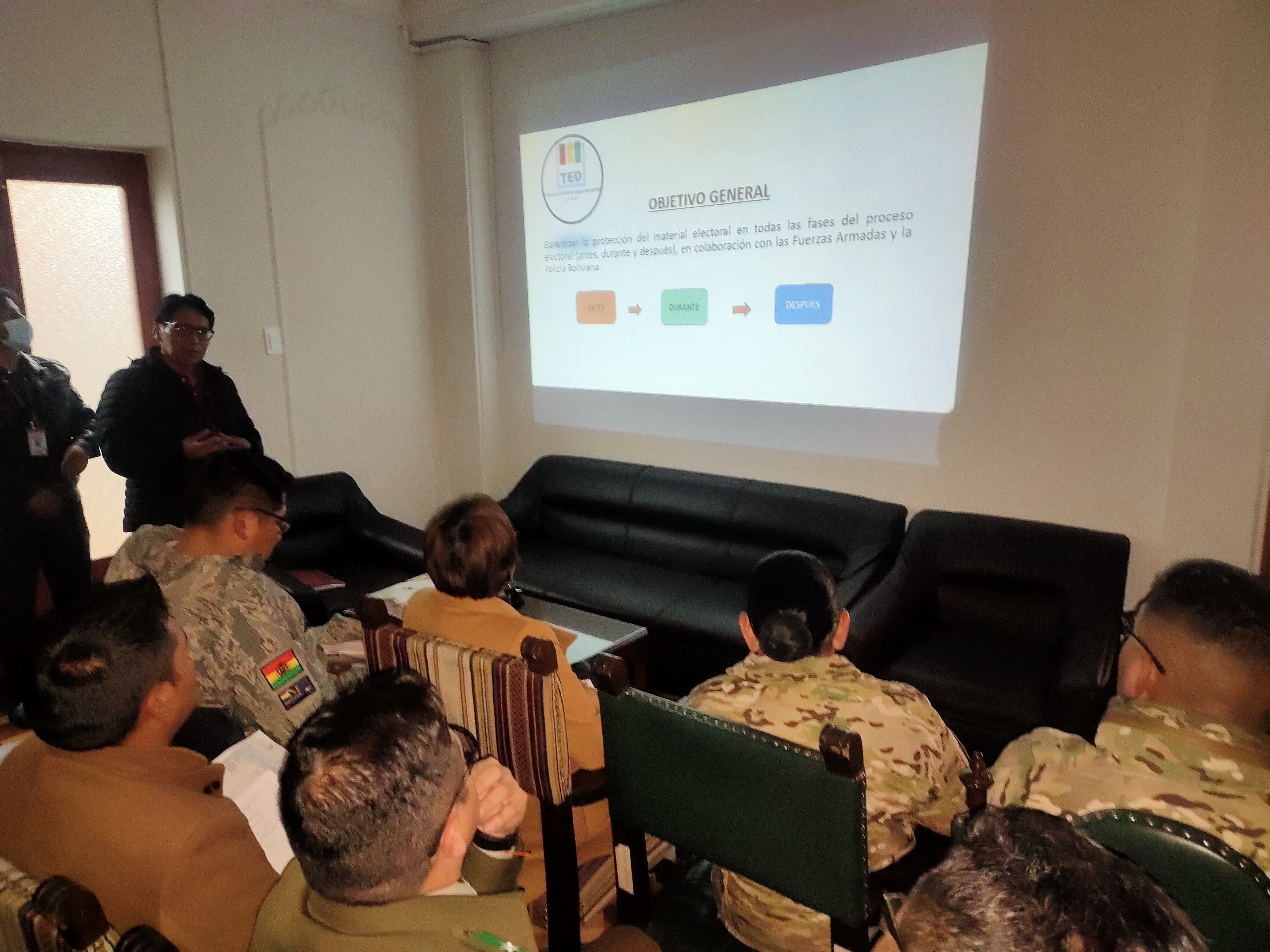 Cabe recordar que el 3 de julio el TED La Paz, en coordinación con la Dirección Nacional de Procesos Electorales (DNPE), llevó a cabo el primer Taller de Capacitación de la Cadena de Custodia del Material Electoral, dirigido a oficiales de las Fuerzas Armadas y de la Policía Boliviana. Esta primera capacitación se realizó en el Salón Rojo del Servicio de Registro Cívico (Serecí), ubicado en la Av. Mariscal Santa Cruz.