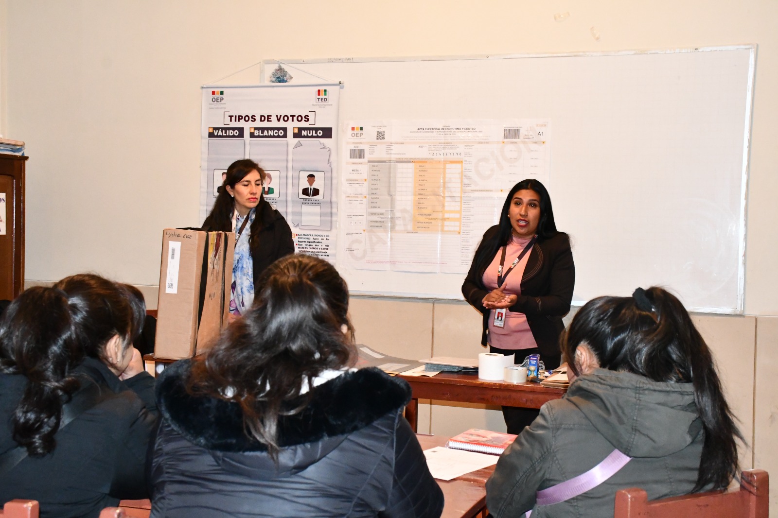 Durante el acto de posesión, el presidente del TED Oruro, Limber Arroyo, resaltó la importancia de las juradas y jurados electorales el día de las elecciones, ya que son las máximas autoridades de la mesa de sufragio, y pidió “total compromiso en el desarrollo de las capacitaciones para evitar errores en el llenado de actas”.