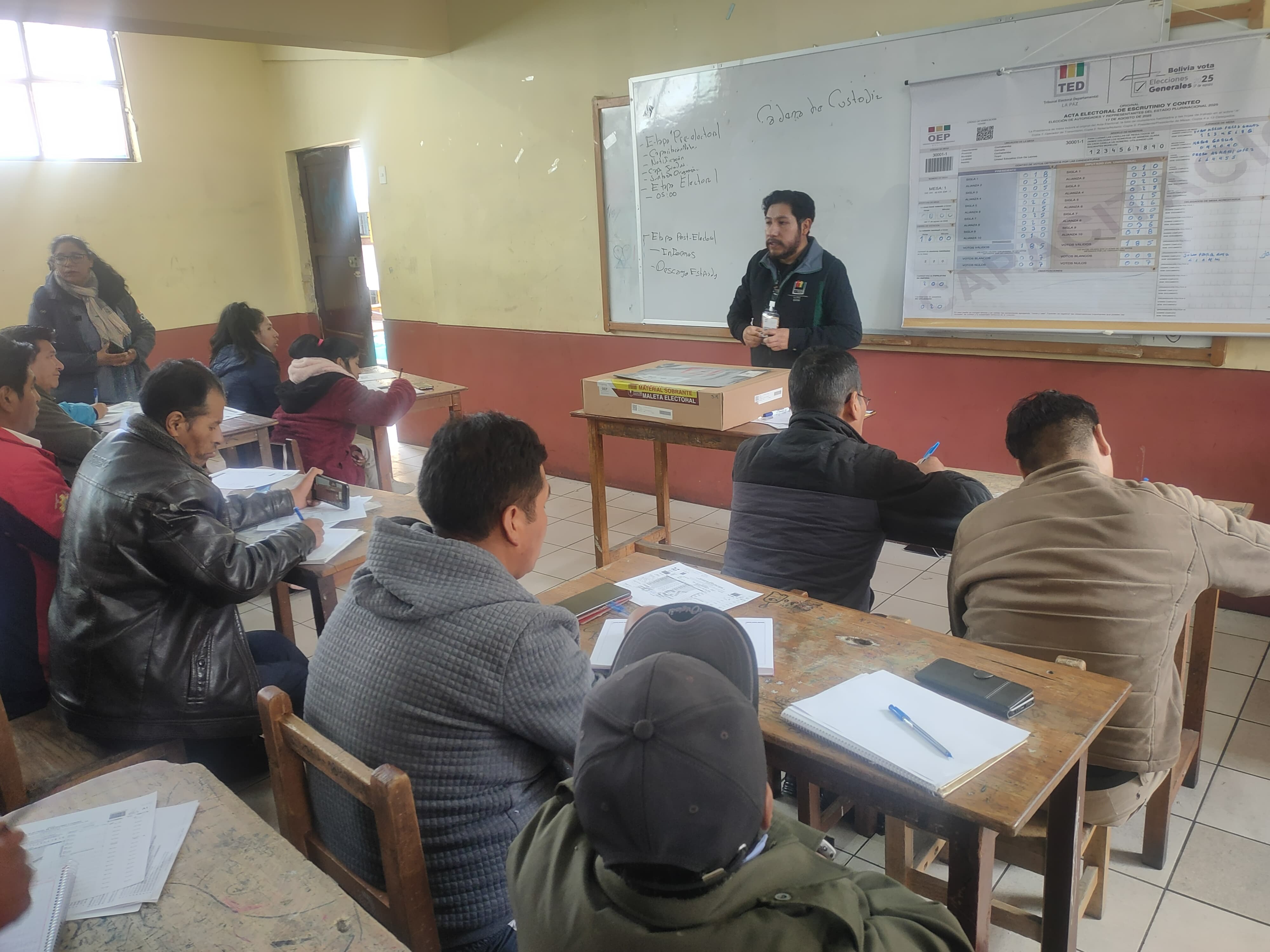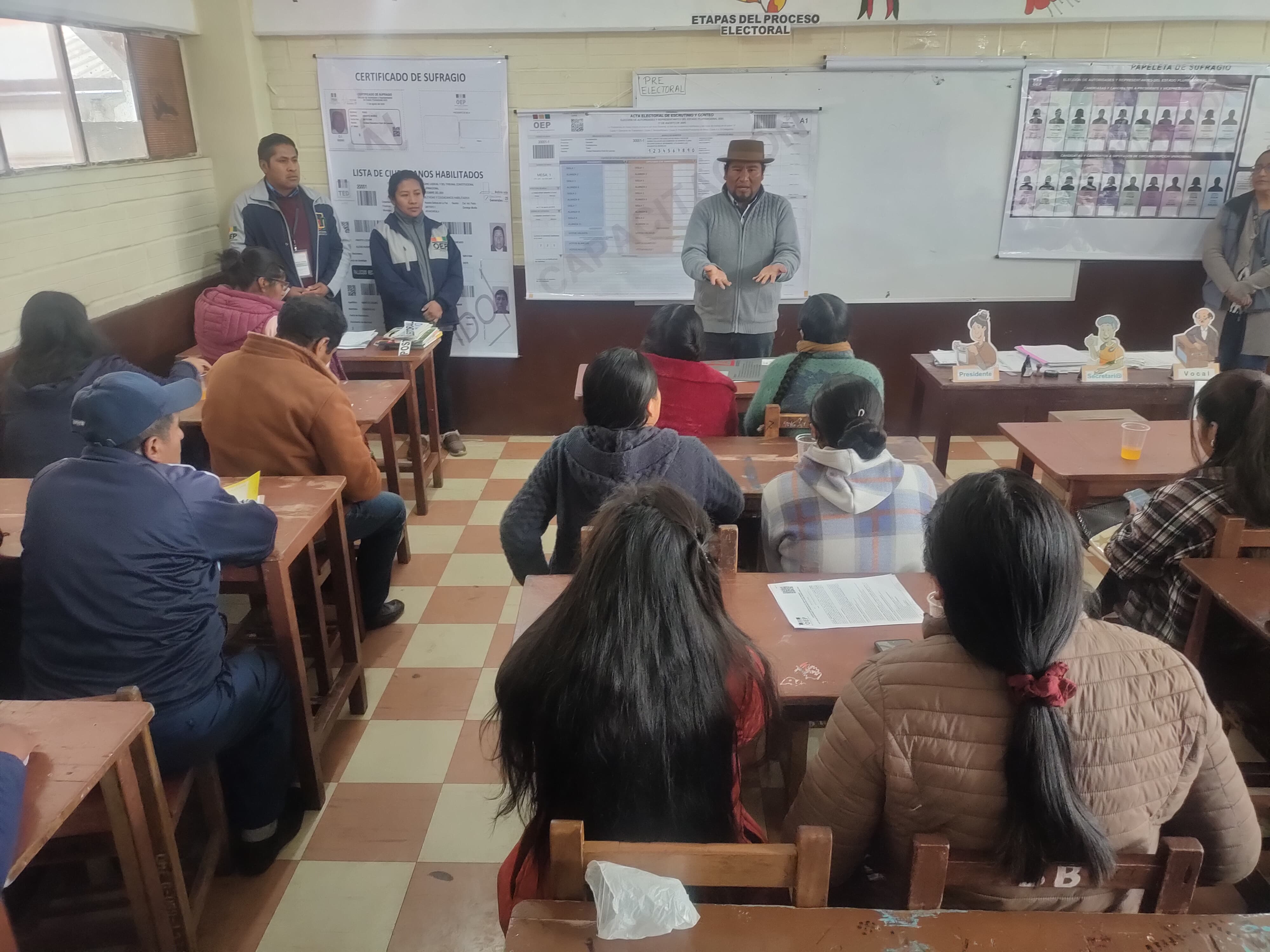 En cumplimiento del calendario electoral, la capacitación fue realizada en las unidades educativas Agustín Aspiazu, Simón Bolívar, Ayacucho e Instituto Americano. Esta inducción inició a las 8.30 y culminó a las 13.00, los vocales del TED La Paz participaron en esta actividad.