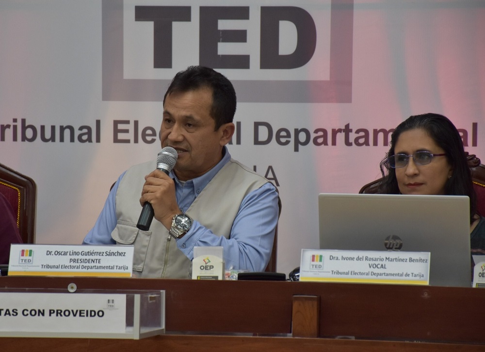 El Tribunal Electoral Departamental (TED) de Tarija llevó a cabo el último simulacro del cómputo departamental, actividad en la que participaron la Sala Plena, el Comandante Departamental de la Policía, observadores de Unión Europea y Fundación Jubileo (Observación Ciudadana de la Democracia), así como delegados de organizaciones políticas.