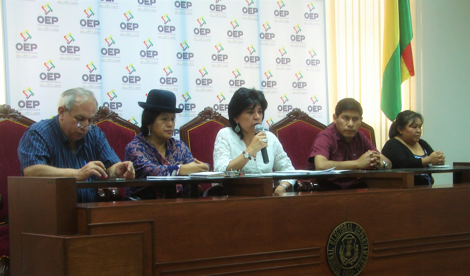 Para completar la Sala Plena del TED Tarija -como establece la norma ante la falta de vocales en el departamento, que sólo tiene a la vocal Zulma Sánchez Castillo- estuvieron presentes en esta ciudad la presidenta del Tribunal Supremo Electoral (TSE), Katia Verónica Uriona Gamarra, y los vocales Antonio José Iván Costas Sitic, Idelfonso Mamani Romero y María Eugenia Choque Quispe.