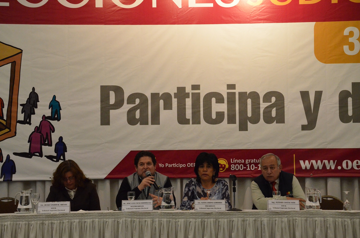 Las y los vocales del TSE durante la conferencia del informe de media jornada de la elección.