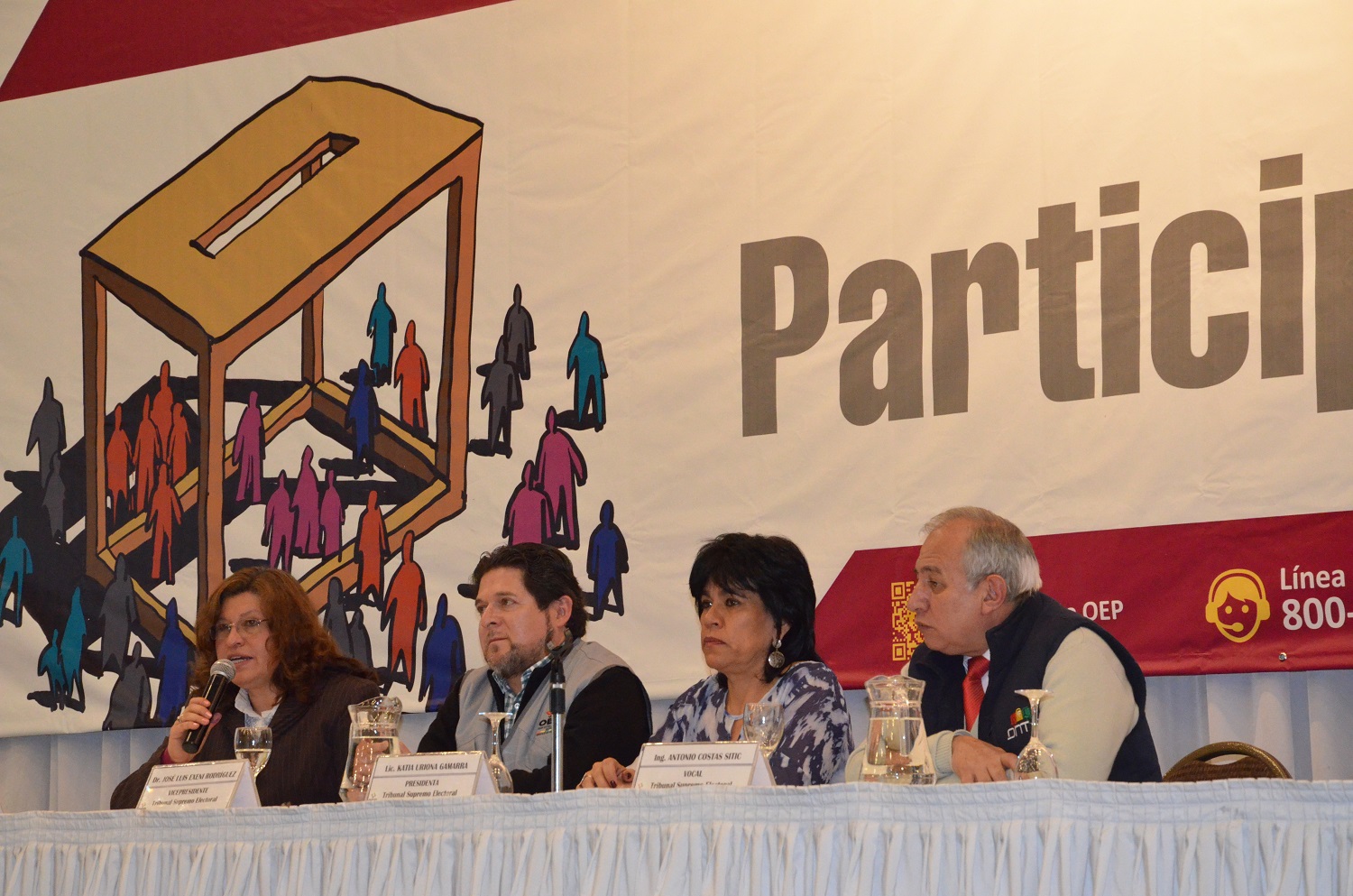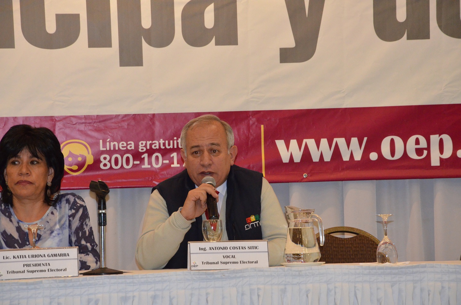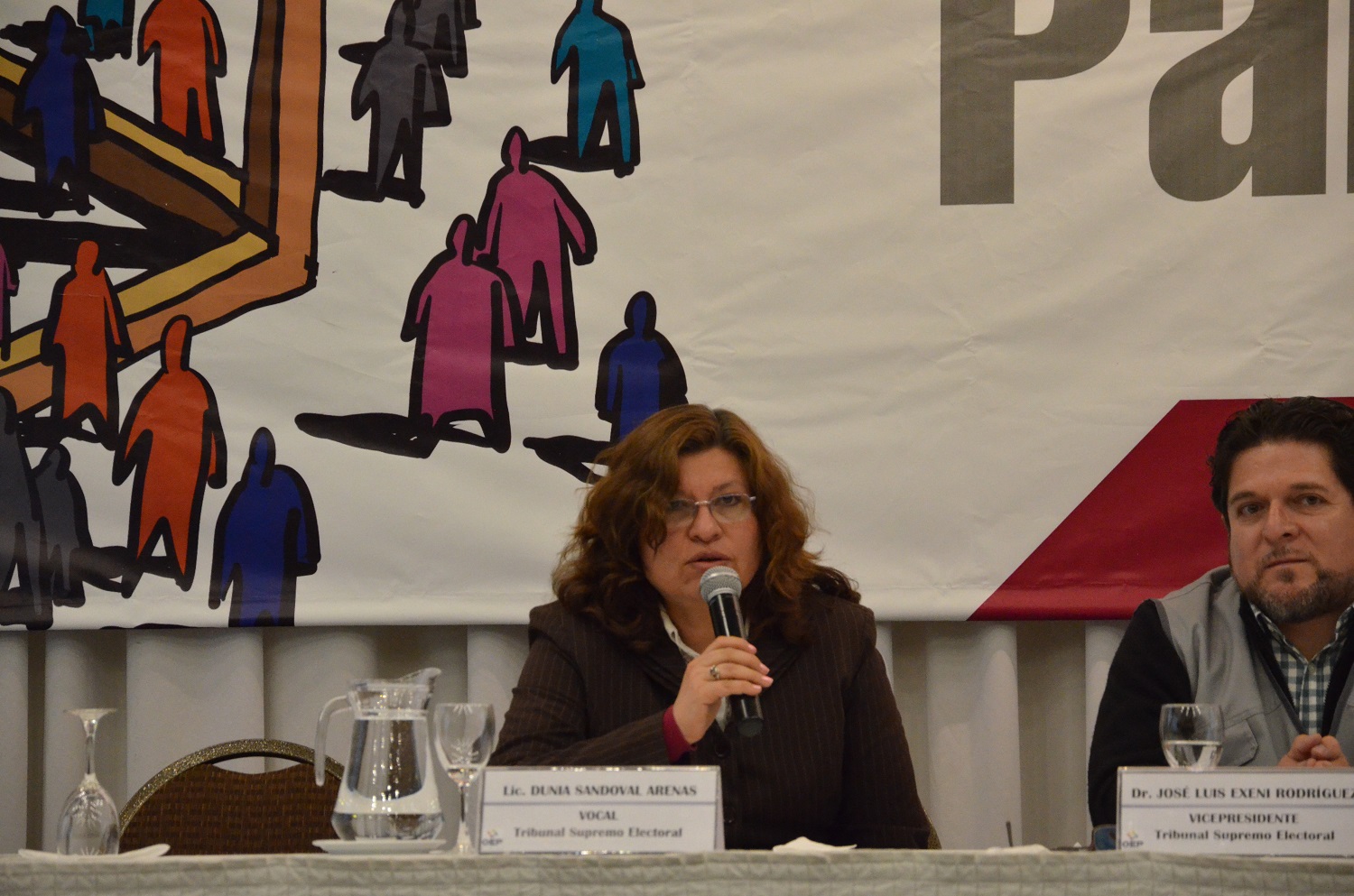 A su turno la vocal Dunia Sandoval, llamó a la población a votar y rechazar las noticias falsas y resaltó la participación democrática de los bolivianos y las bolivianas.