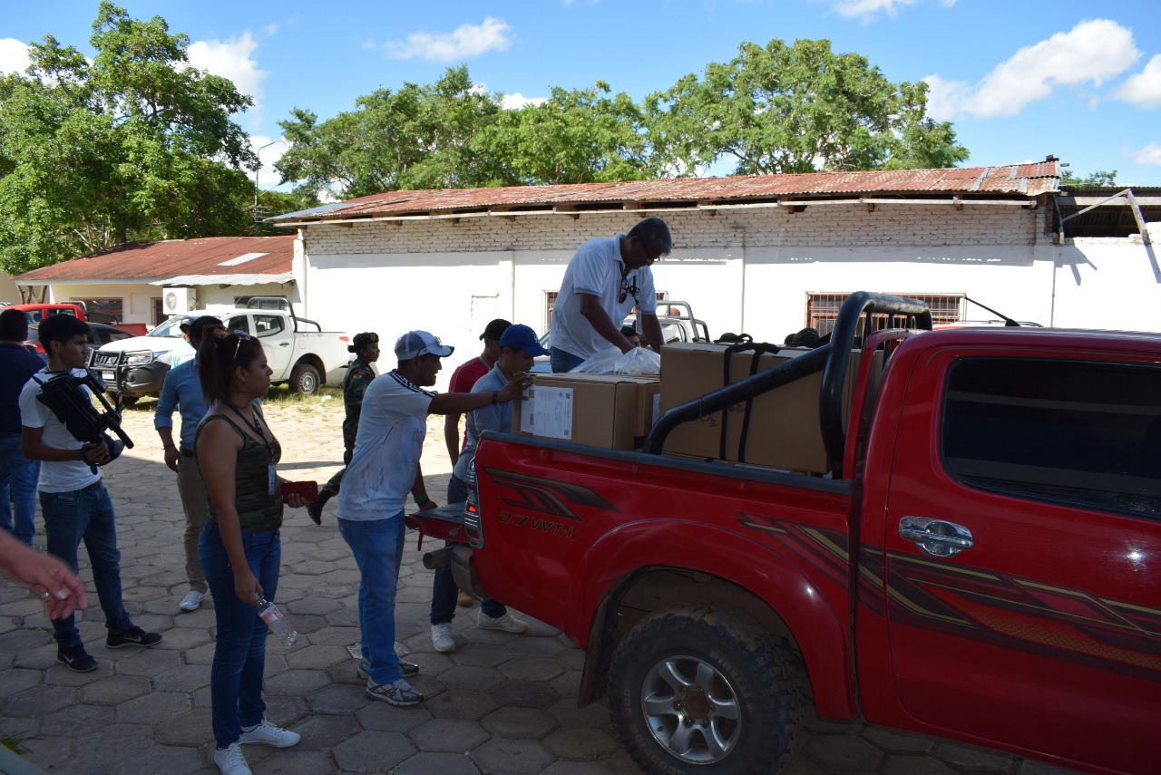 En Tarija, la distribución de las 1.670 maletas comenzó este jueves por la madrugada hacia la provincia Gran Chaco. Se prevé enviar este mismo material esta noche a Villa Montes, Yacuiba y Bermejo.