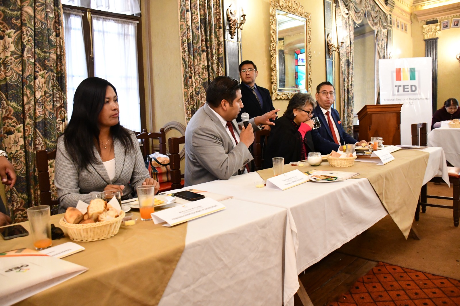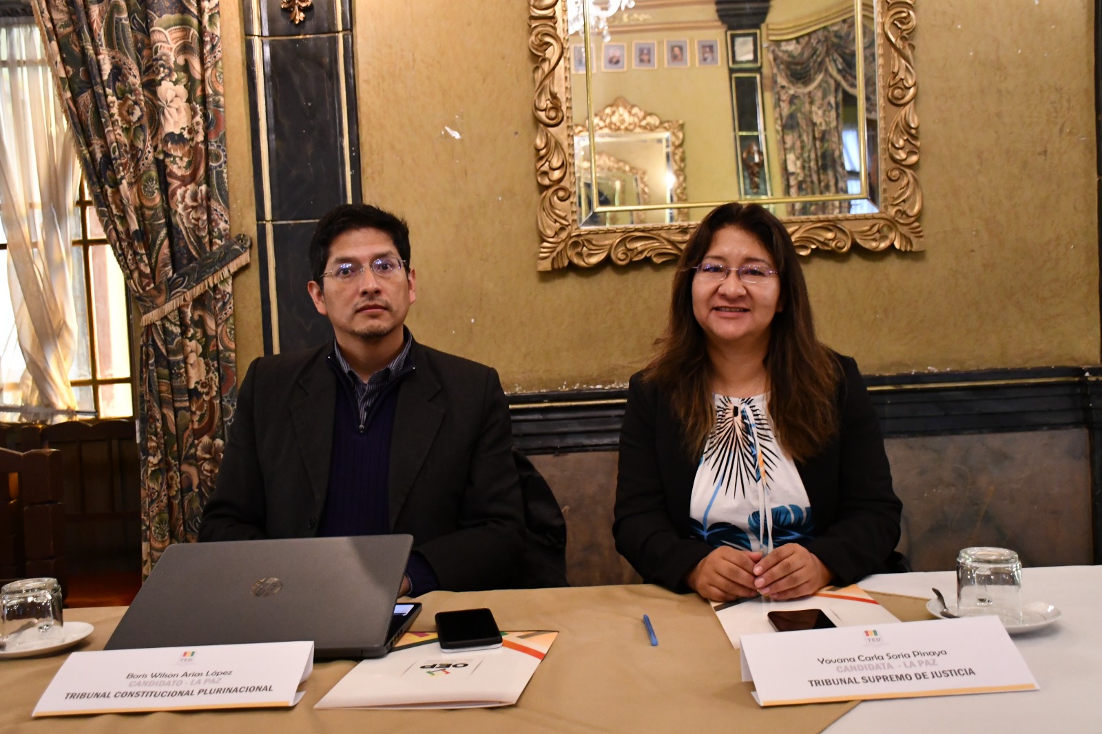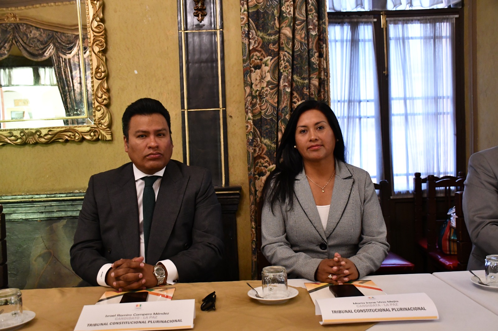 Vocales del Tribunal Electoral Departamental (TED) La Paz se reunieron con las candidatas y candidatos para las Elecciones Judiciales del l de diciembre, para informar sobre la naturaleza del proceso y la etapa de difusión de méritos, que inicia este jueves 17 de octubre.