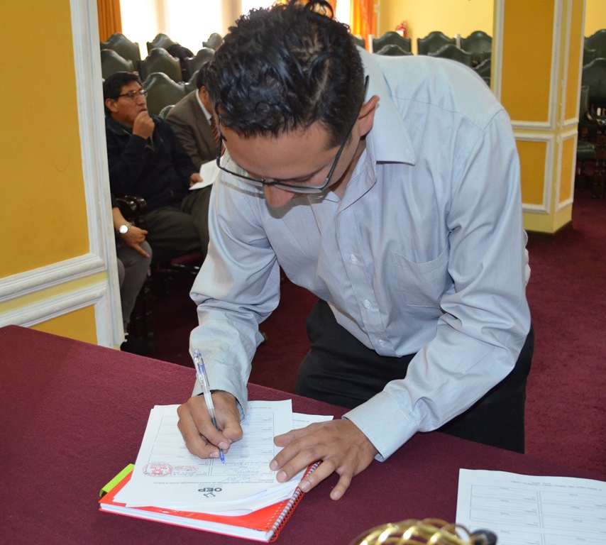 Las y los delegados de las cinco organizaciones políticas presentes suscribieron el acta; no firmó el documento el delegado por el PDC quien se retiró de la actividad antes de su conclusión.