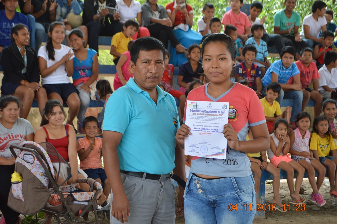 El Tribunal Electoral Departamental (TED) de Beni entregó 18 credenciales al gobierno estudiantil de la unidad educativa Perfecta Viuda de Vejarano, en el municipio de Loreto; y 10 a la unidad educativa Juan Maraza, en el municipio de San Javier.