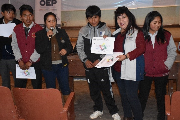 Durante el taller también se explicó acerca de los gobiernos estudiantiles y su importancia en las unidades educativas para conocer los principios fundamentales de la Democracia Intercultural, que residen en la soberanía popular, plurinacionalidad, interculturalidad, ciudadanía intercultural, pluralismo político, complementariedad, representación y equivalencia; y sobre los valores que la sustentan, como ser: igualdad, respeto, solidaridad, responsabilidad, libertad, equidad social y de género, inclusión social, reciprocidad, equilibrio, diálogo y justicia social.