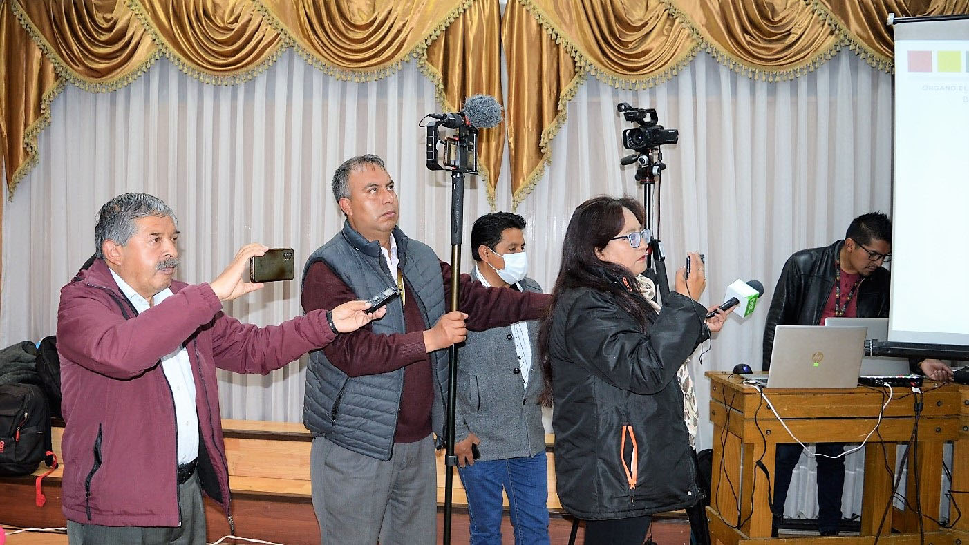 Periodistas se informan sobre el procedimiento del empadronamiento de ciudadanas y ciudadanos en Potosí.