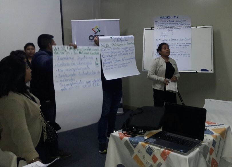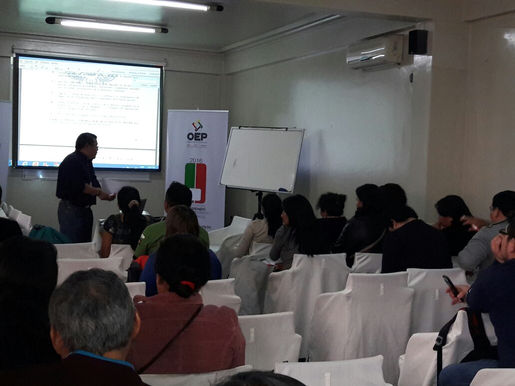 Temas como el marco conceptual y normativo del Referendo Autonómico, Reglamento de Campaña y Propaganda Electoral, Reglamento para el Referendo de Estatutos Autonómicos y Cartas Orgánicas 2016, las faltas y delitos electorales, materiales electorales (acta electoral), el procedimiento de votación, el voto asistido, entre otros, fueron desarrollados por los técnicos del SIFDE Tarija, Olivia Centellas, Mabel Chiri, Augusto Nakasone y Lot Auzza.