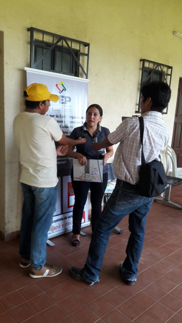 En los tres días en los que se desarrollaron los talleres (entre el 17 y 19 de octubre), los vocales del TED Santa Cruz se desplazaron hasta los municipios de Buena Vista, El Torno, Yapacaní, Cuatro Cañadas, El Puente y Gutiérrez, encabezando los equipos integrados por miembros de las unidades de Geografía Electoral, Informática y el Servicio Intercultural de Fortalecimiento Democrático (SIFDE).