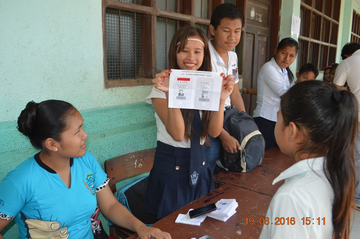 En el proceso, que se realizó el 19 de agosto, las y los estudiantes eligieron al Frente Unidos por la Educación (FEUPE) a la cabeza de la estudiante Berlina Tamo Moyoviri, del quinto de secundaria, quien dirigirá la directiva durante la gestión 2016.