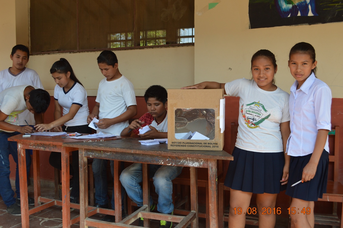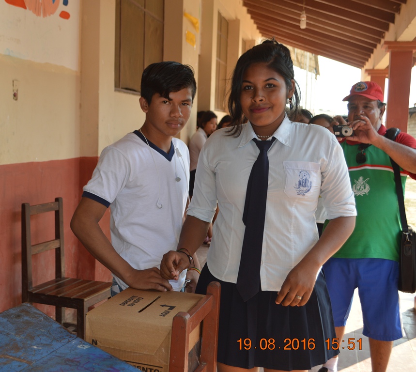 El proceso se desarrolló 19 de agosto la Unidad Educativa Elvira Monasterio del Municipio de la Santísima Trinidad, de acuerdo al calendario electoral programado por el Tribunal electoral Estudiantil.