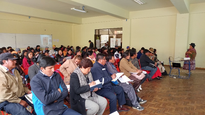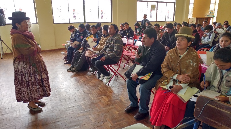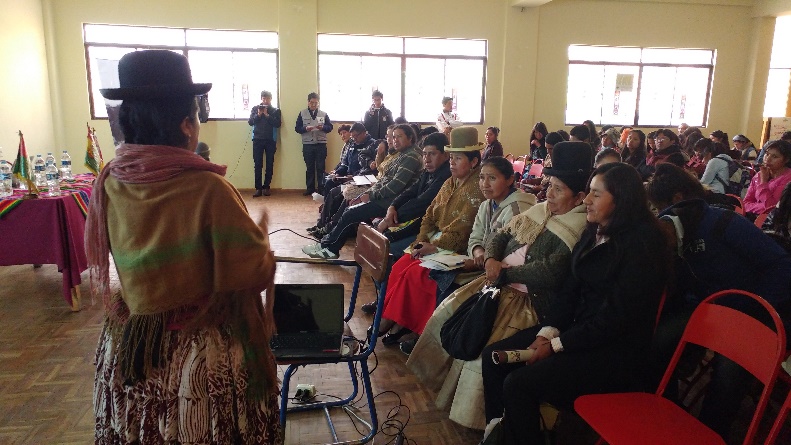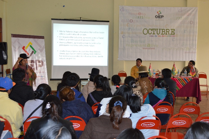 El seminario tuvo como expositores a la vocal del TSE, María Eugenia Choque Quispe, quien se refirió a la participación política de la mujer; el vocal del TED La Paz, Evaristo Valencia Alarcón, con el tema “La democracia intercultural”; y el Responsable de Coordinación del SIFDE del TED La Paz, Ausberto Aguilar, quien presentó el tema “Referendo de Estatutos Autonómicos y Cartas Orgánicas”.