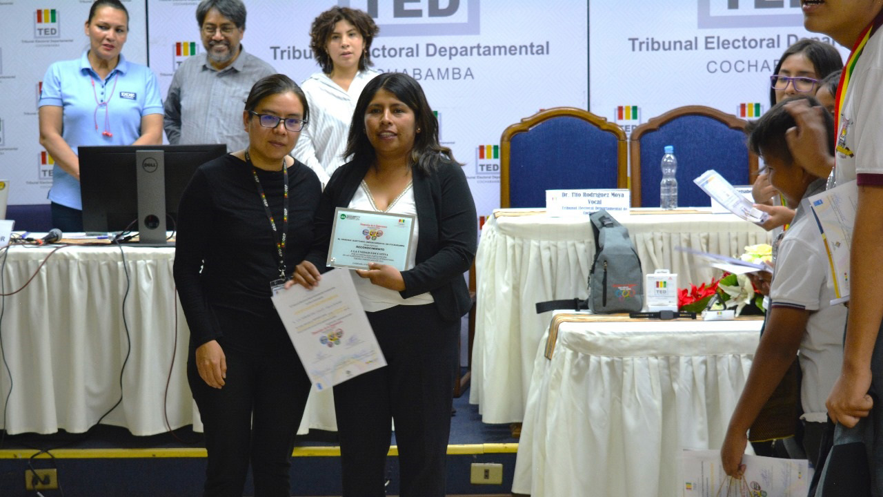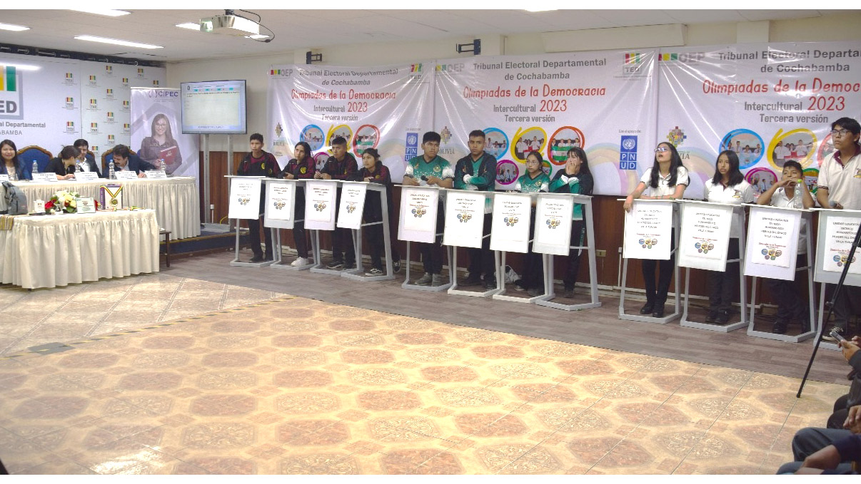 El viernes 22 de septiembre concluyeron las Olimpiadas de la Democracia Intercultural 2023 en el departamento de Cochabamba, donde resultó ganador el equipo de la unidad educativa Eusebio Tudela Tapia II, del distrito de Cochabamba; el segundo lugar ocupó el colegio Técnico Humanístico Héroes del Chaco, de Villa Tunari; y en tercer lugar quedó el colegio Soledad Rivas, de Vinto.