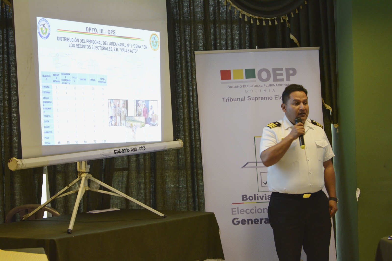 Por su parte, el comandante departamental de la Policía de Cochabamba, Cnl. Edson Claure, informó que se desplegarán 4.400 efectivos para las tareas de seguridad antes, durante y después de la jornada electoral. Estas labores incluyen el resguardo del Centro Departamental de Logística, el acompañamiento del material electoral, la seguridad en los recintos y la custodia durante la devolución de las maletas electorales. “Esperamos que todo el proceso se desarrolle en un clima de paz y tranquilidad para la población”, señaló.