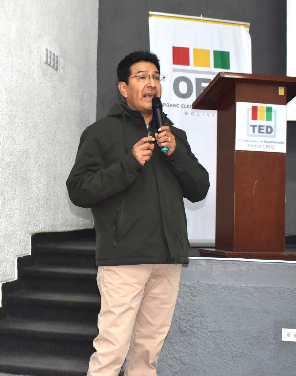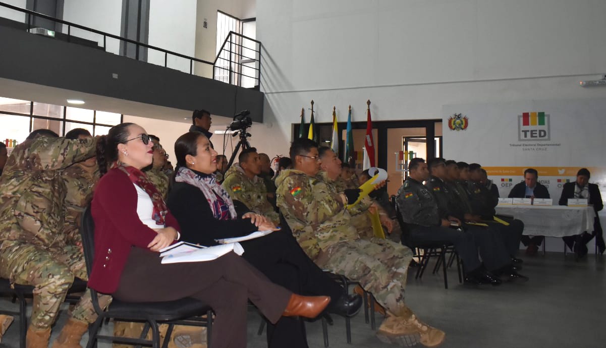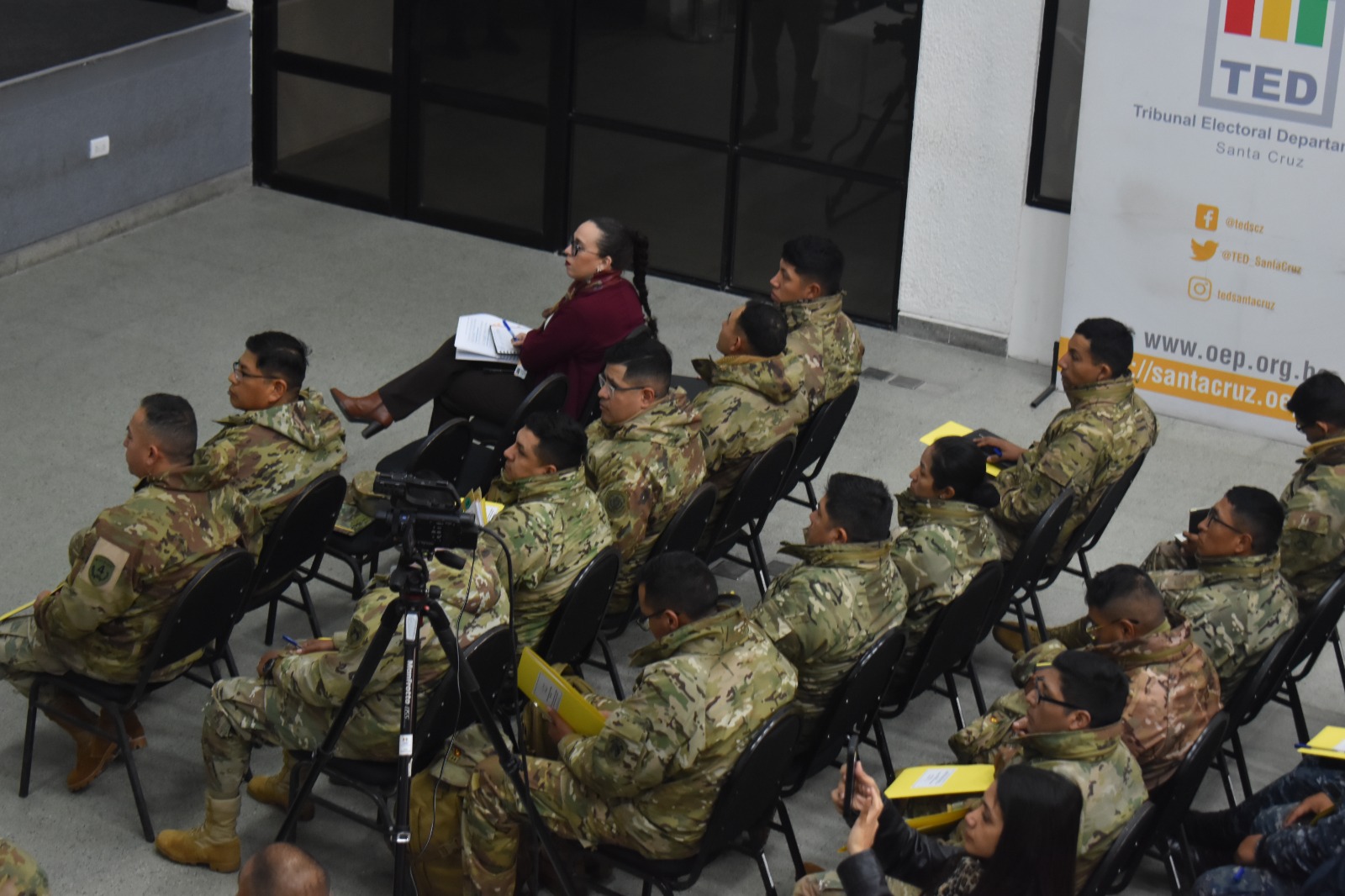 La actividad se desarrolló el miércoles 2 de julio en el salón auditorio del Tribunal Electoral Departamental (TED) de Santa Cruz, con la participación de la presidenta María Cristina Claros, el vicepresidente José Miguel Callejas y los vocales Judith Sánchez, Marcelo Yabeta y Saúl Paniagua. También asistieron representantes de la Fuerza Aérea, Fuerza Naval, Ejército y efectivos de la Policía Boliviana.