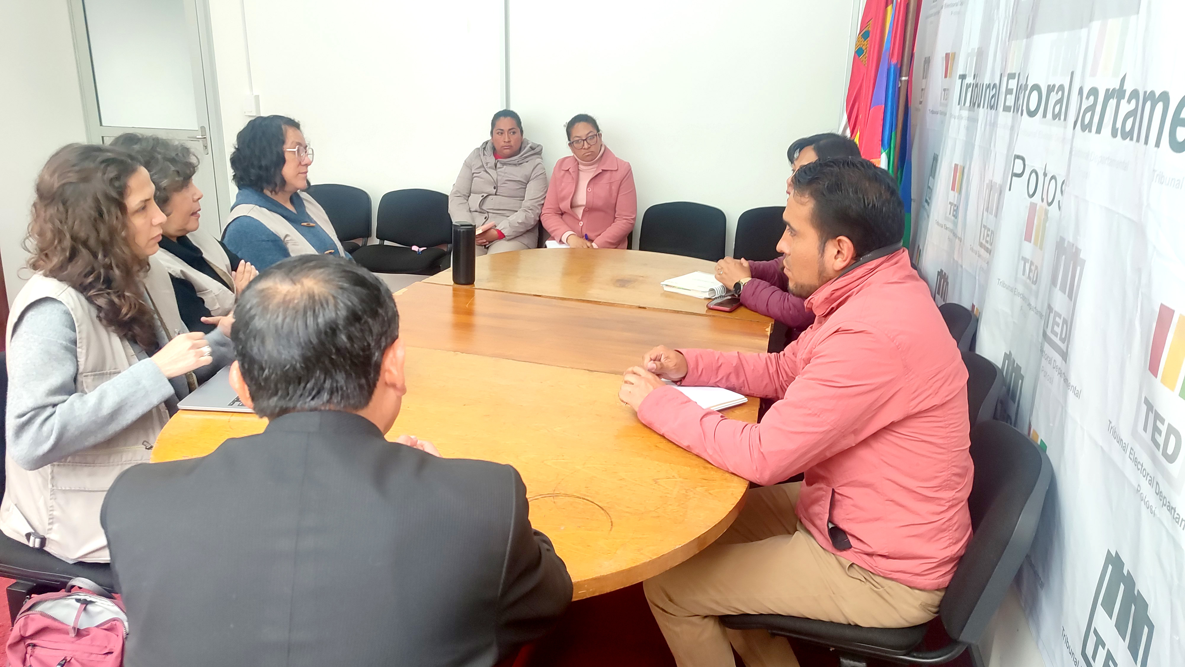 Durante la reunión, la presidenta del TED Potosí, Rocío Mamani, afirmó que la institución fortaleció sus mecanismos formativos desde 2020, con especial énfasis en el llenado del acta electoral, los cursos permanentes para notarios, la producción de materiales audiovisuales dirigidos a los jurados y la realización de simulacros integrales de cómputo. “La idea es que la ciudadanía conozca qué va en la maleta, qué va en el sobre y cuál es la importancia del acta electoral”, señaló.