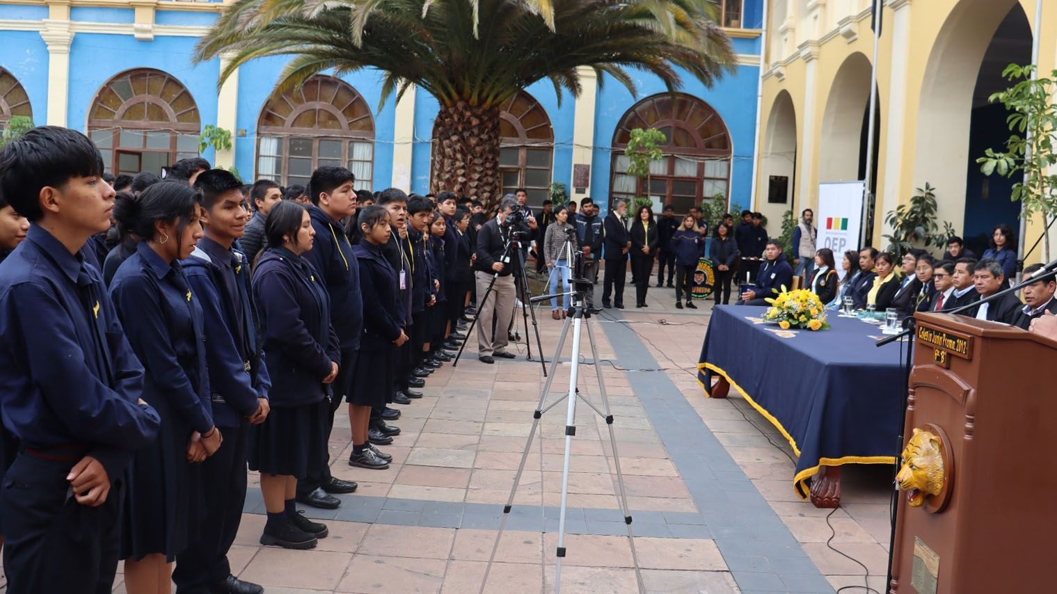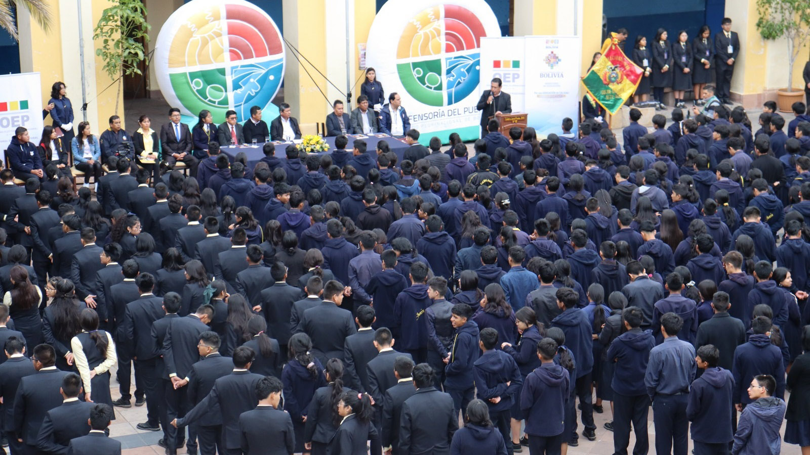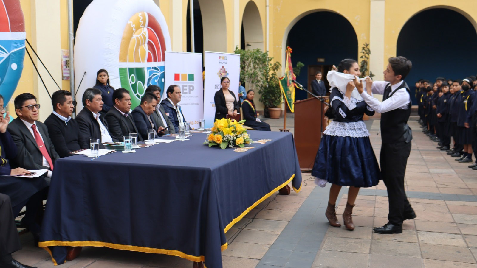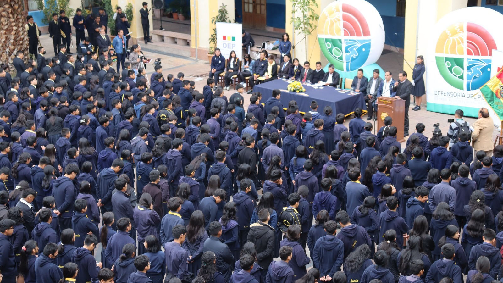 La unidad educativa Junín del distrito Sucre fue el escenario de inauguración de las jornadas electorales estudiantiles en el departamento de Chuquisaca, este viernes 5 de abril, que contó con la participación de autoridades educativas locales y del nivel nacional, el representante de la Defensoría y vocales del Tribunal Electoral Departamental (TED).