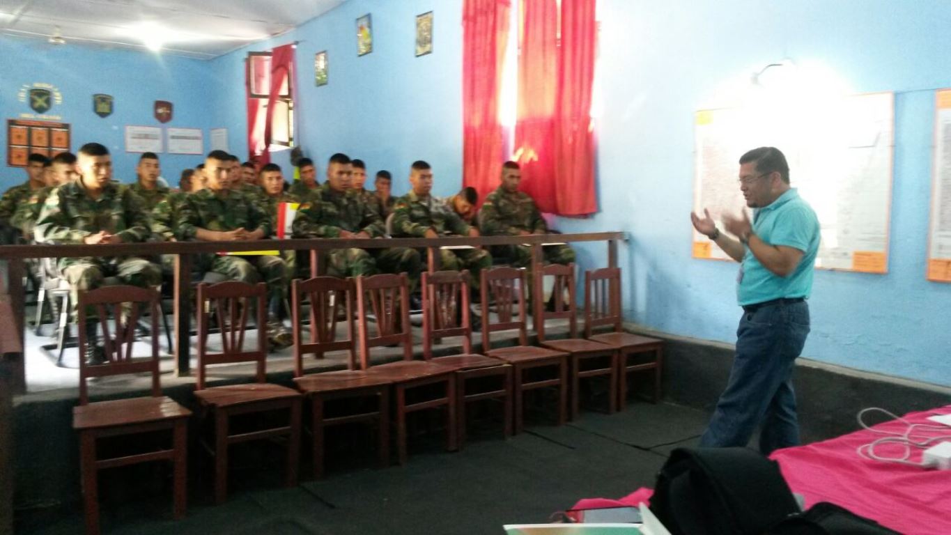 El técnico del Servicio Intercultural de Fortalecimiento Democrático (SIFDE) del TED Tarija, Augusto Nakasone, realizó la capacitación a los 20 guías electorales de Villa Montes, del Regimiento de Artillería 3 “Pisagua”. Asimismo, en Yacuiba, este miércoles 16, se capacitaron a los 100 guías electorales del Regimiento de Caballería 3 “Aroma”.