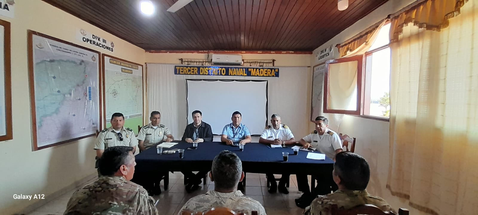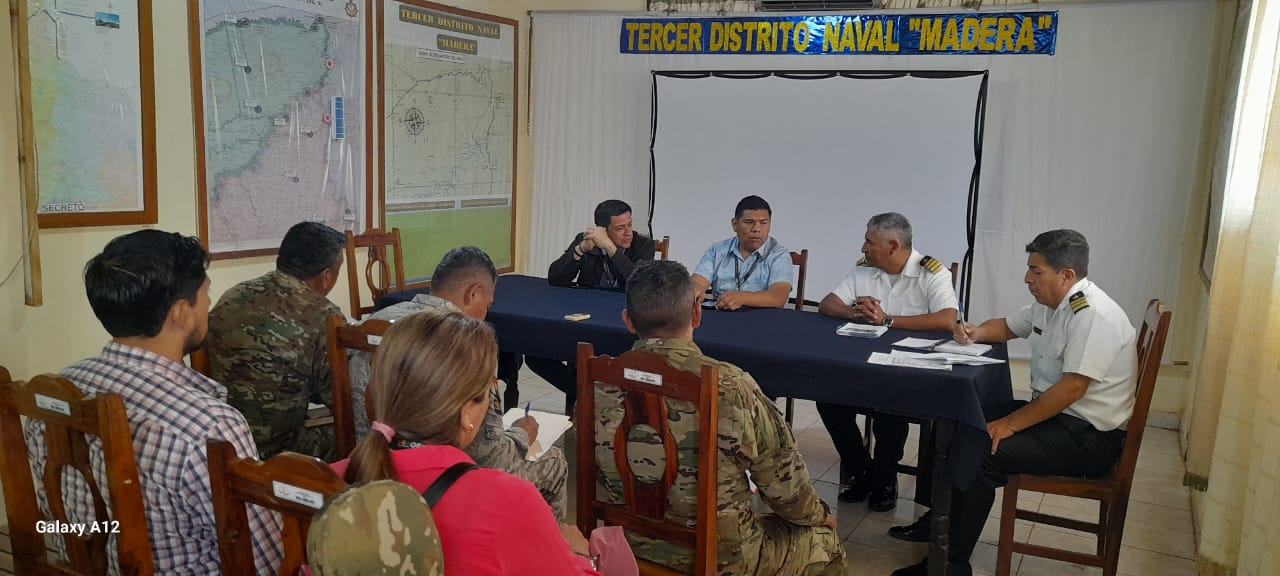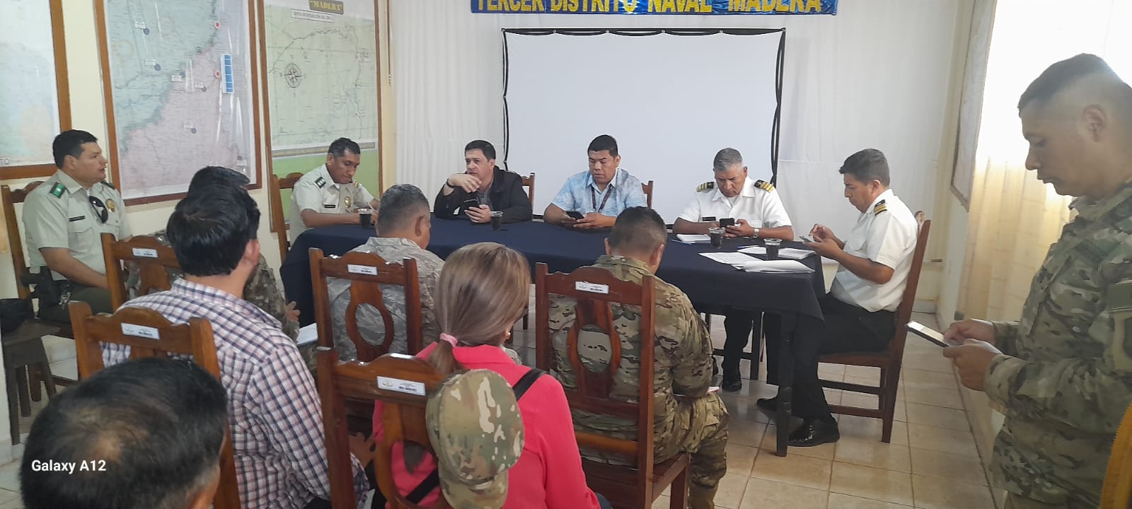 La reunión se realizó el miércoles 30 de julio, en instalaciones del Distrito Naval “Madera” y contó con la participación del Vocal del TED Beni, Rodolfo Coímbra Suárez, representantes de las Fuerzas Armadas, personal militar destacado en la región, además de efectivos de la Policía Boliviana.