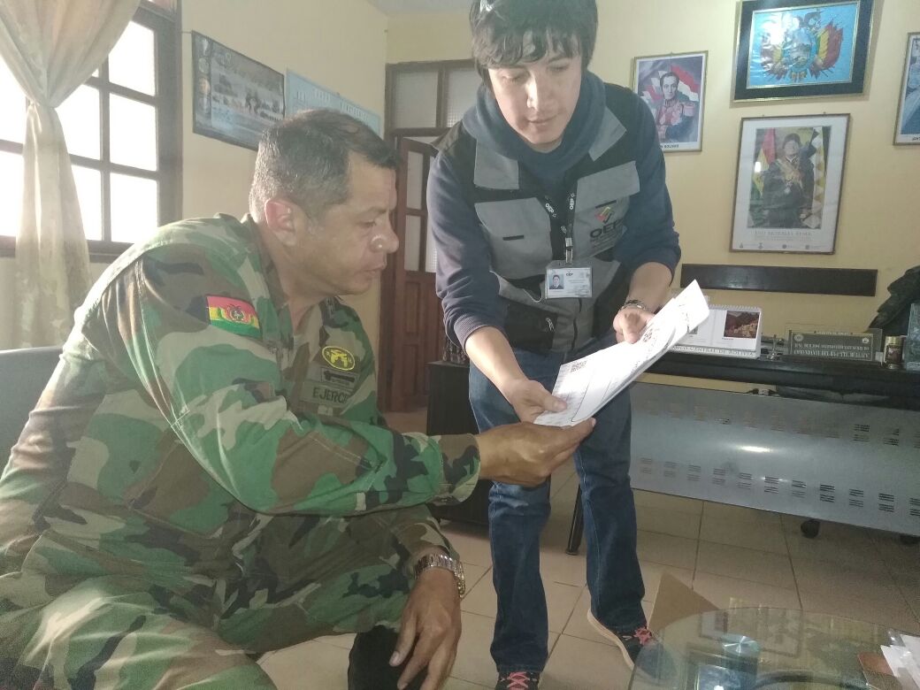 Los representantes del TED Chuquisaca se reunieron con la Policía Boliviana de la localidad de Cuevo a fin de coordinar la seguridad para el desarrollo de la consulta. De la misma forma, visitaron la Radio ECO de Huacaya para informar sobre el auto de buen gobierno decretado por el Gobierno Departamental de Chuquisaca para ambas entidades convocadas.