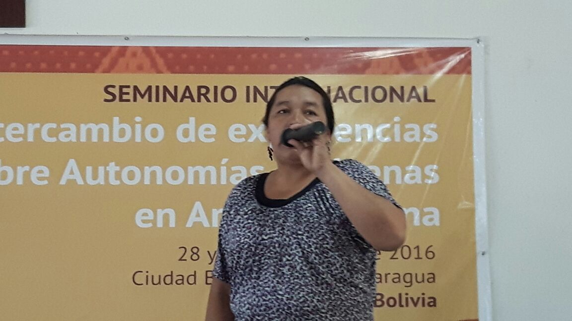 De la misma forma, Nancy Bravo, del proyecto Nasa “Plan de vida”, del Cauca – Colombia, aseveró que el reto de los procesos de autonomías indígenas, está en trabajar en normas que coadyuven al desarrollo de cada uno de procesos que se han venido gestando.
