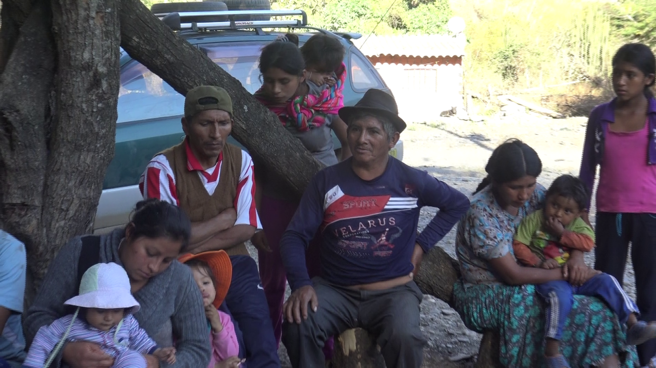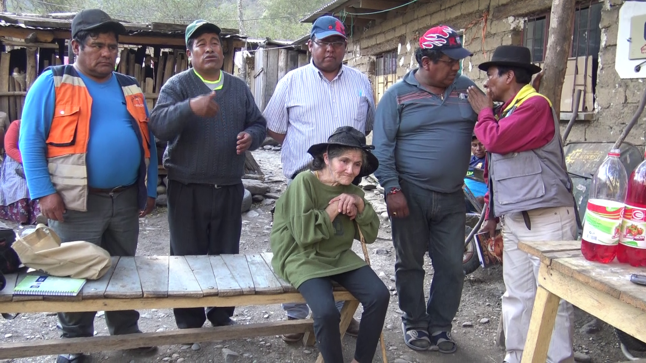 Comunarios de Huayrapata en la deliberación de la consulta.