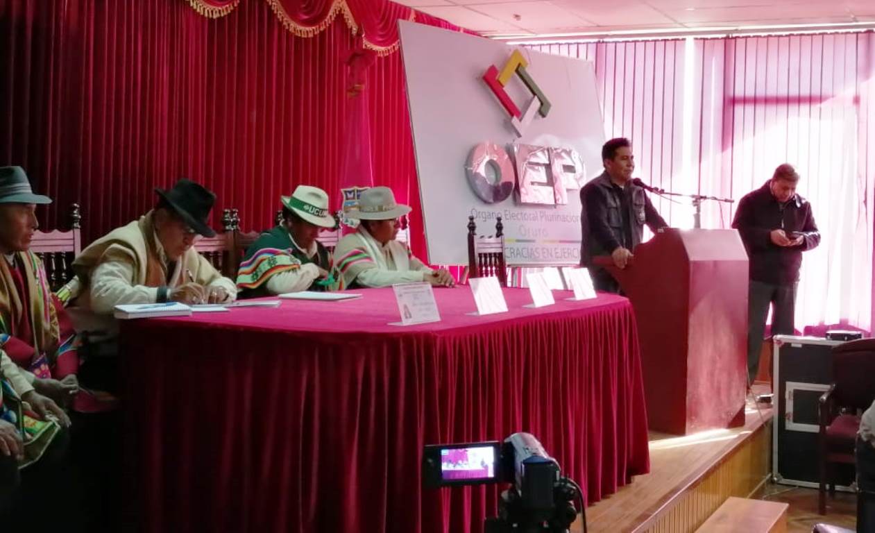 La decisión se asumió durante la reunión de coordinación que realizaron el 8 y 9 de julio las autoridades originarias de las nueve unidades territoriales, junto a la comisión técnica del Tribunal Supremo Electoral (TSE) y del Tribunal Electoral Departamental (TED) Oruro, a la cabeza de la vocal del TSE, Lucy Cruz.