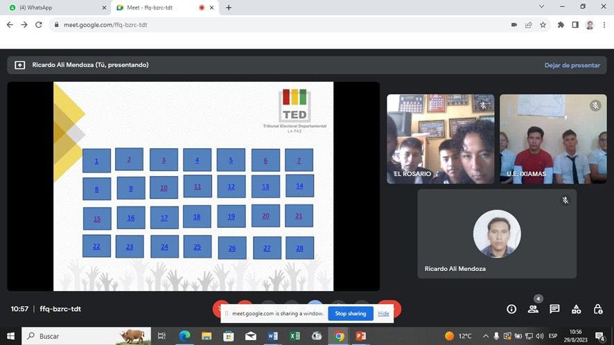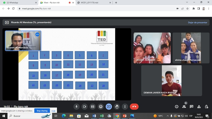 Este 30 de agosto concluyó la primera fase de las Olimpiadas de la Democracia Intercultural 2023 en el departamento paceño, donde clasificaron 120 equipos de estudiantes que competirán en la siguiente etapa, según la metodología implementada por el Servicio Intercultural de Fortalecimiento Democrático (Sifde) del Tribunal Electoral Departamental (TED) de La Paz.