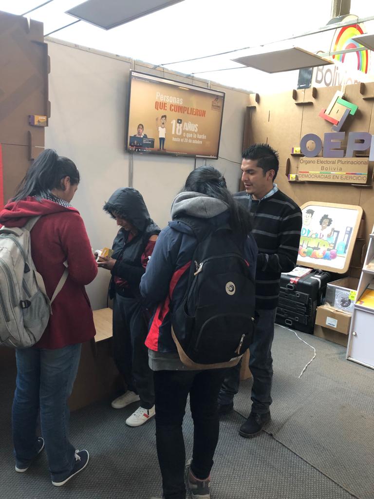 El stand del TSE está en segundo piso del Bloque Amarillo. Allí, la ciudadanía podrá consultar y conocer las atribuciones que tiene el Órgano Electoral Plurinacional (OEP) durante la administración y ejecución del Calendario Electoral de las Elecciones Generales.