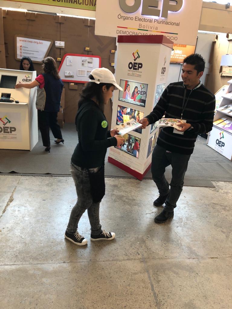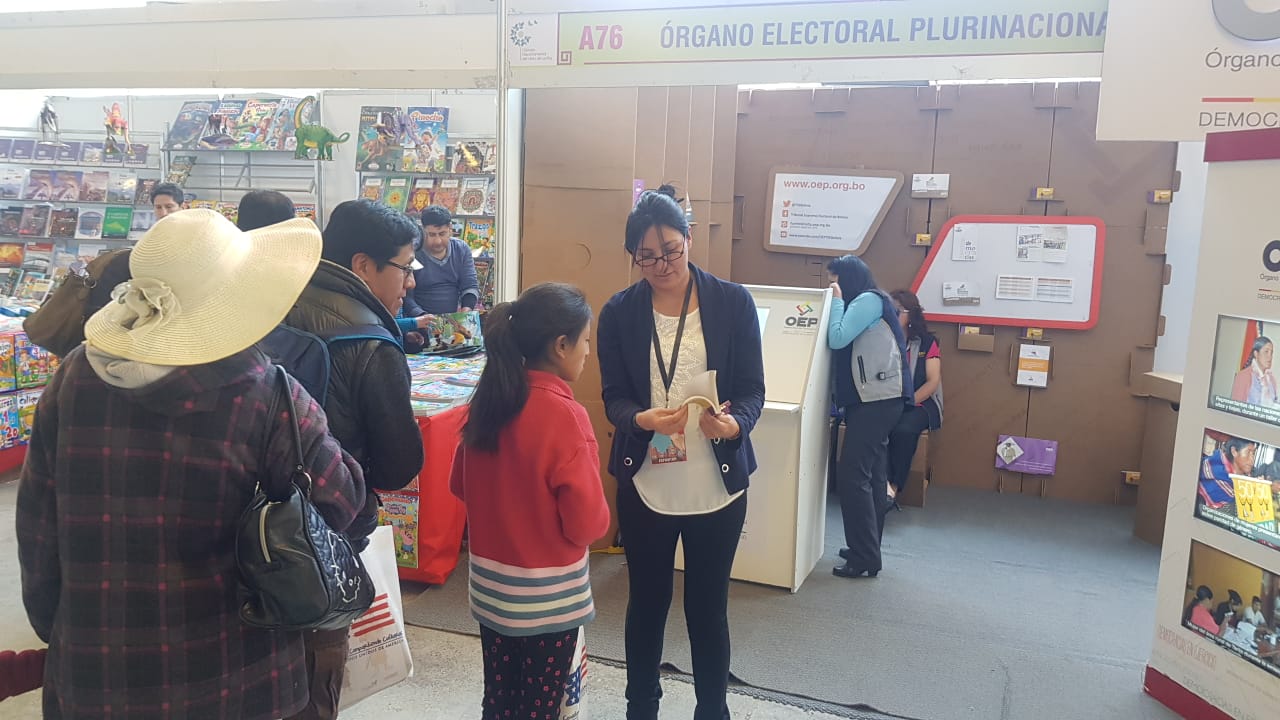 El Tribunal Supremo Electoral (TSE) participa en la Feria Internacional del Libro, en La Paz, donde informará y aclarará las dudas que la ciudadanía tenga acerca de las Elecciones Generales, que se realizarán el 20 de octubre en el país y en los asientos electorales del exterior.