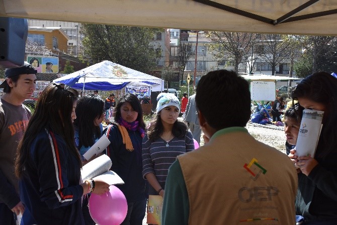 El Tribunal Electoral Departamental (TED) de La Paz participó en la “Feria Multipropósito “Sí a la Vida” que organizó el Comité Cívico y la Junta Vecinal de Alto Obrajes, donde informó sobre la Democracia Intercultural.