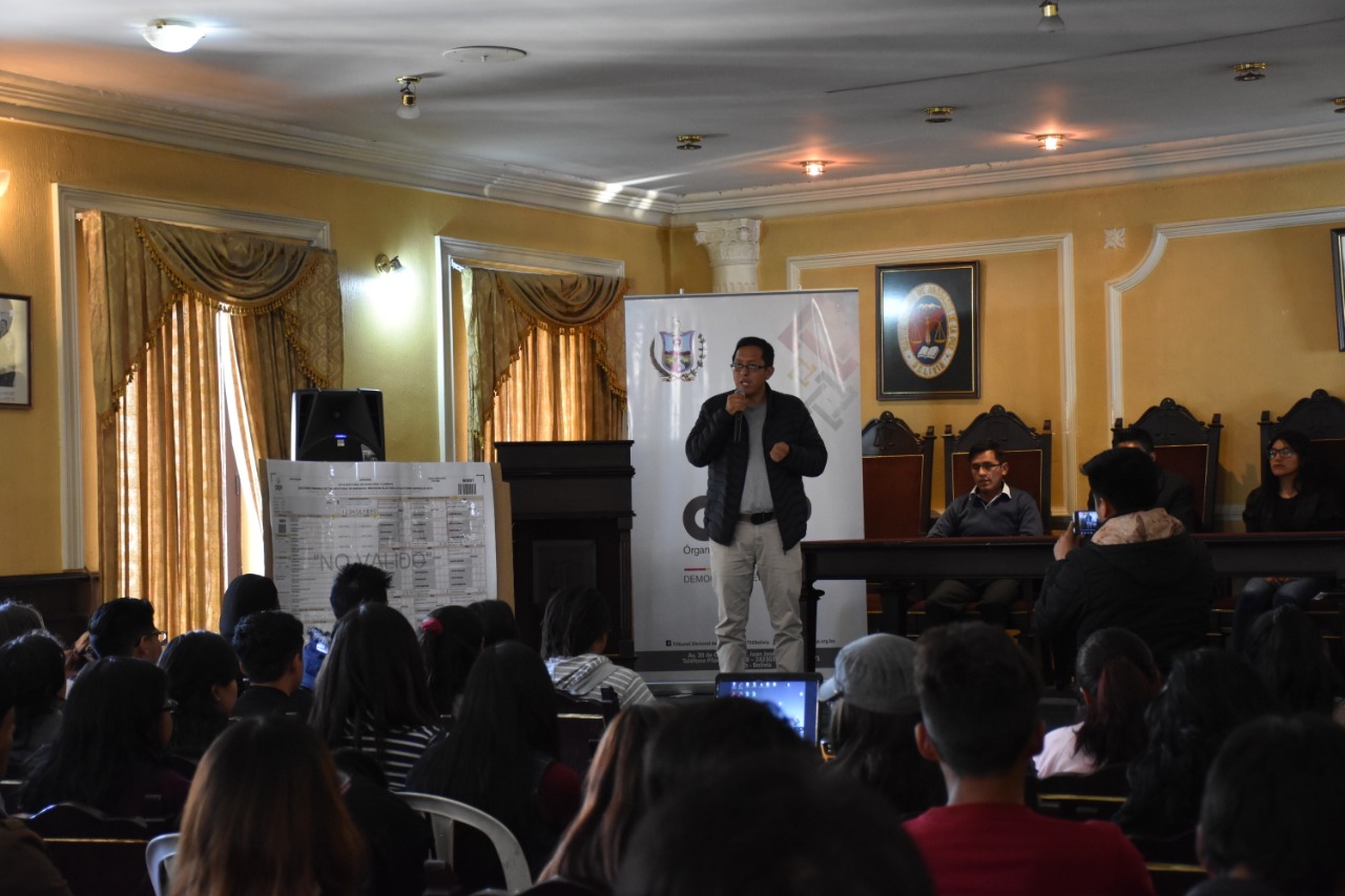 Durante las capacitaciones, las y los vocales del TED La Paz, quienes participaron en los proceso de formación, les explicaron sobre las atribuciones y funciones que deberán cumplir antes, durante y después de la jornada de votación, en el marco de la Democracia Intercultural.
