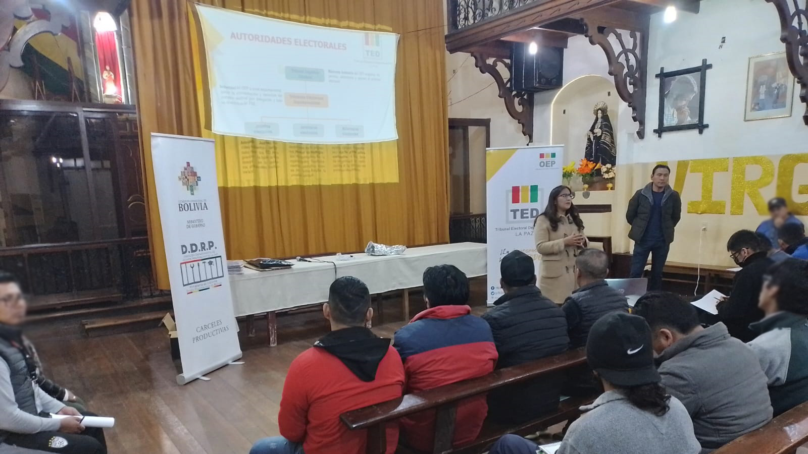 El Tribunal Electoral Departamental (TED) de La Paz, a través del Servicio Intercultural de Fortalecimiento Democrático (Sifde), capacitó a privados de libertad de la cárcel de San Pedro, en la sede de gobierno, que se preparan para elegir a su nuevo Consejo de Delegados.